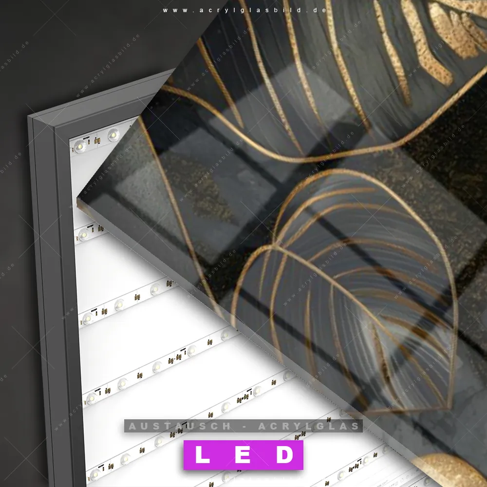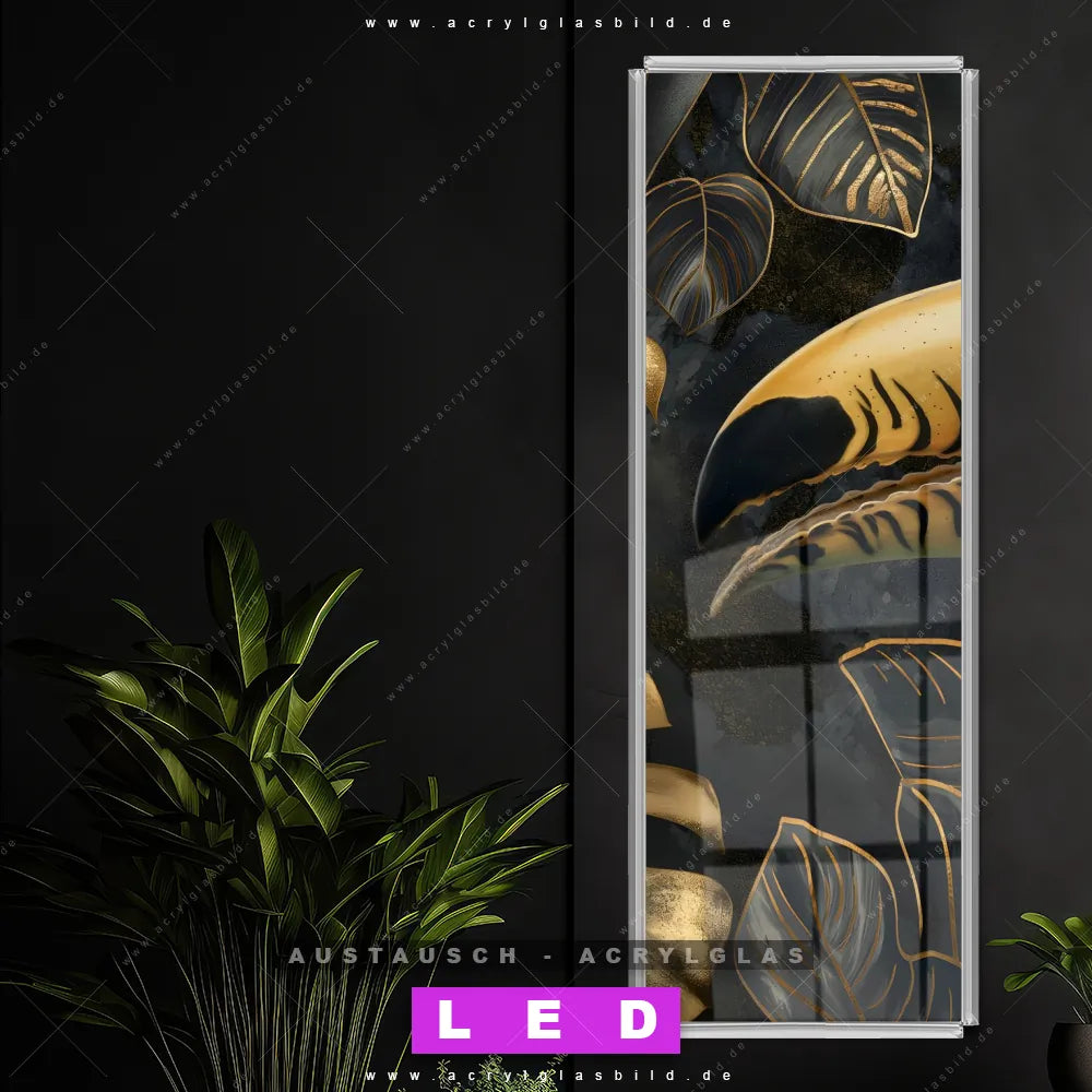 Wechsel-Acrylglas Canvalight® DIA | Monstera und Tukan Gold | Schmal
