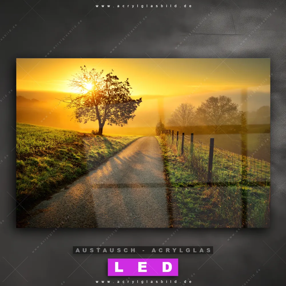 Begriffe wie Sonnenaufgang, Horizont, Landschaft, Urlaub, Reisen, Nebel, Morgenstimmung, Spaziergang, Hügel haben dich auf der Suche nach deinem neuen Austausch-Acrylglasbild inspiriert? Dann sollte das Wechsel-Acrylglasbild Sonnenaufgang für dein bereits vorhandenes LED Acrylglasbild Canvalight® DIA den Weg zu dir finden.