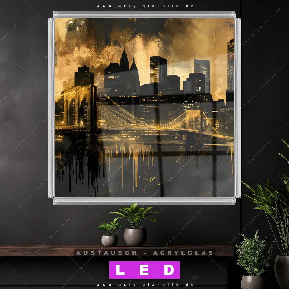 Wechsel-Acrylglas Canvalight® DIA | Nachtleuchten über Manhattan | Quadrat