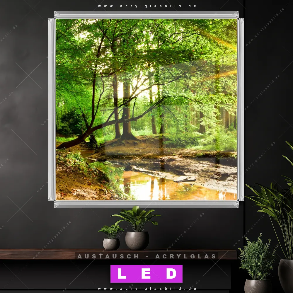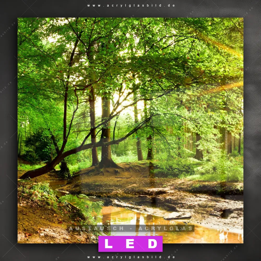Begriffe wie Wald, Baum, Natur, Sonne, Sonnenstrahlen, Licht, Fluss, Bach, Sonnenschein, Bäume, Laubwald haben dich auf der Suche nach deinem neuen Austausch-Acrylglasbild inspiriert? Dann sollte das Wechsel-Acrylglasbild Wald mit Bach für dein bereits vorhandenes LED Acrylglasbild Canvalight® DIA den Weg zu dir finden.