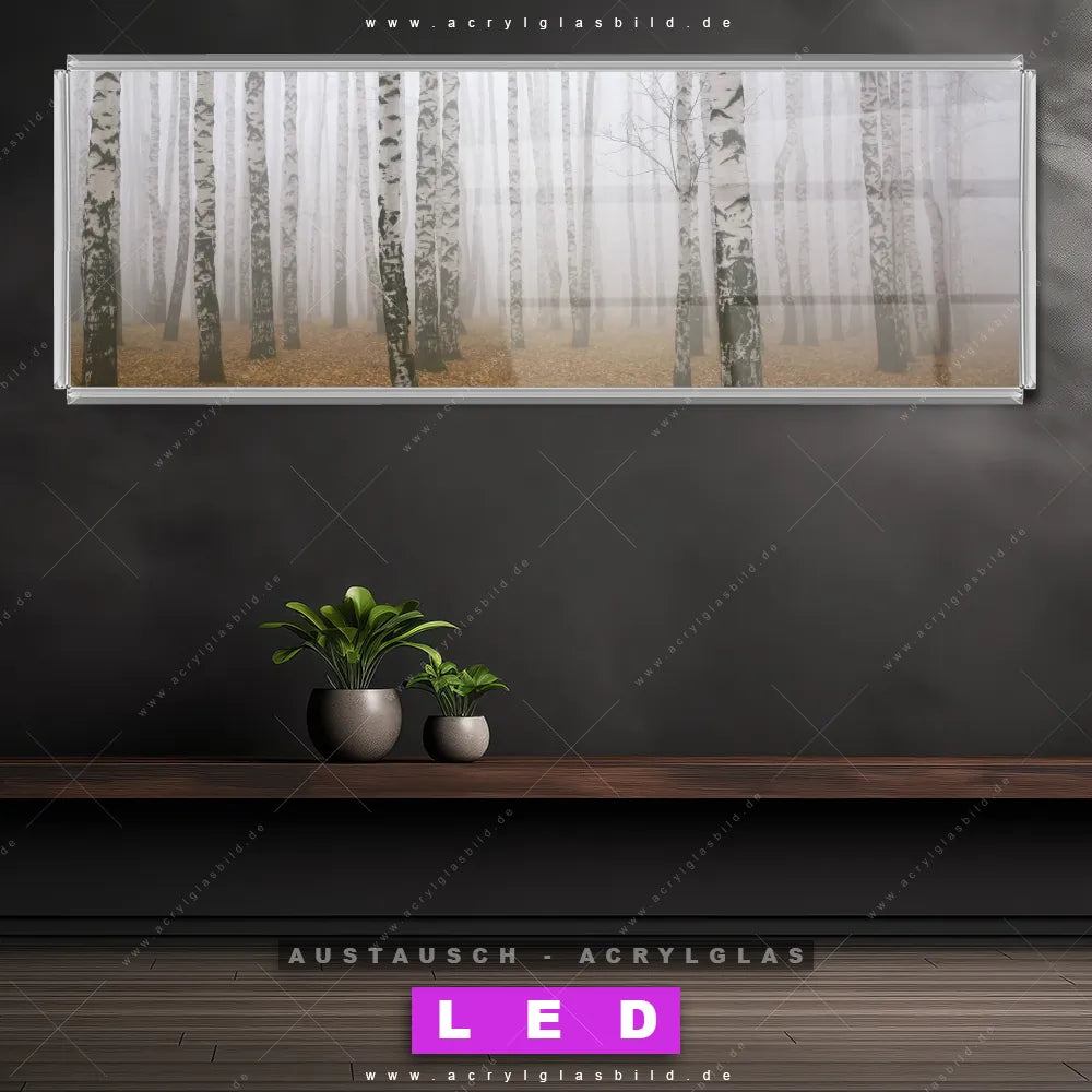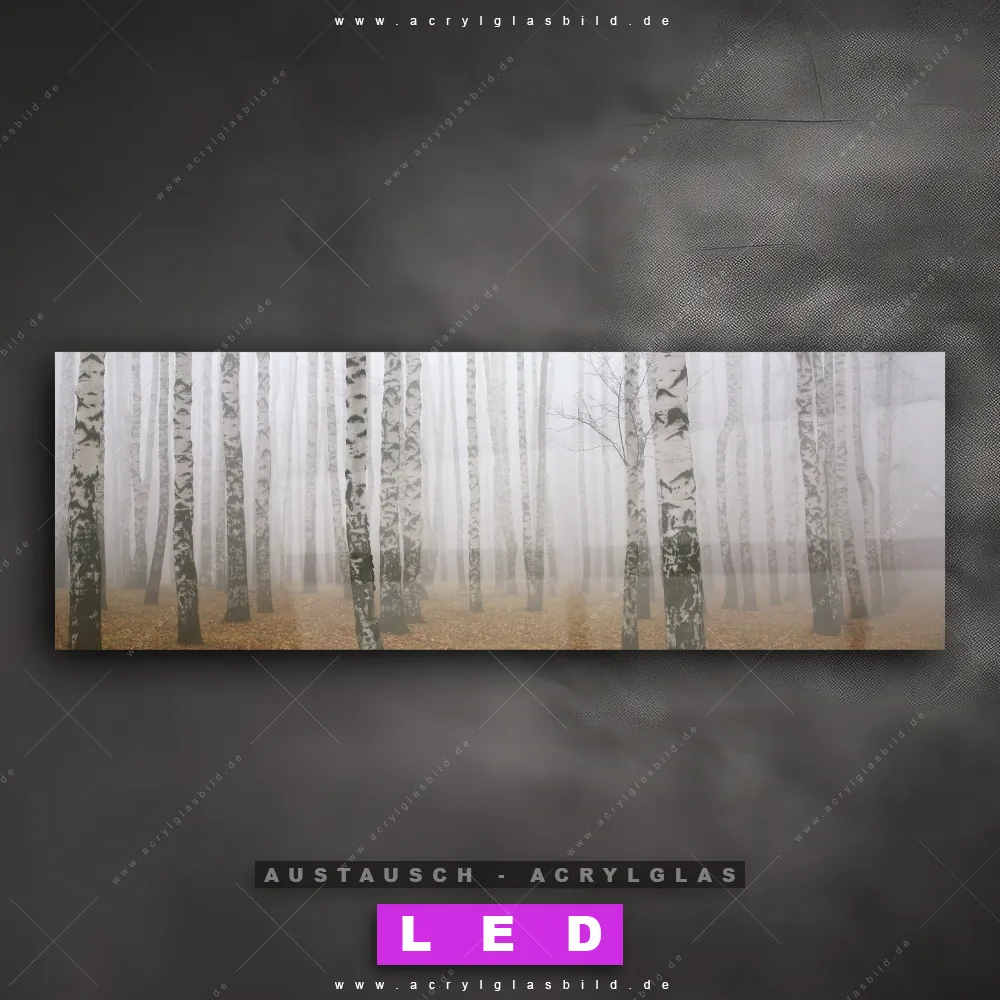 Wechsel-Acrylglas Canvalight® DIA | Nebel im Birkenwald | Panorama