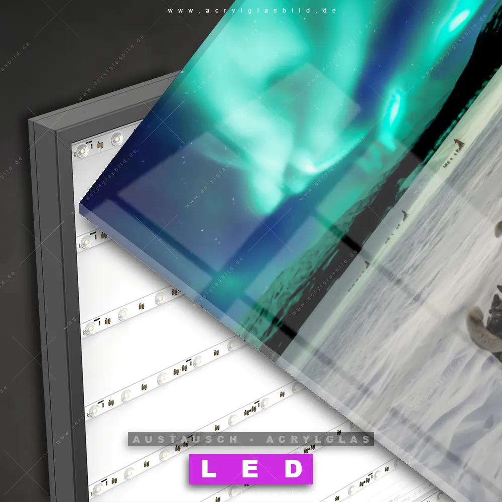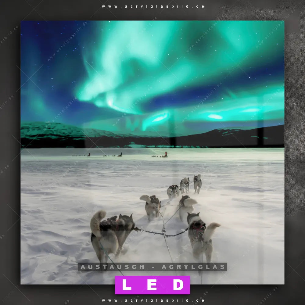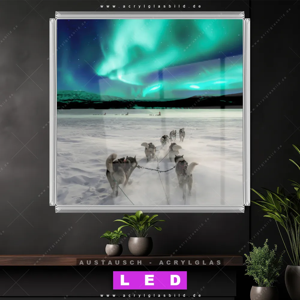 Wechsel-Acrylglas Canvalight® DIA | Nordlichter und Schlittenhunde | Quadrat