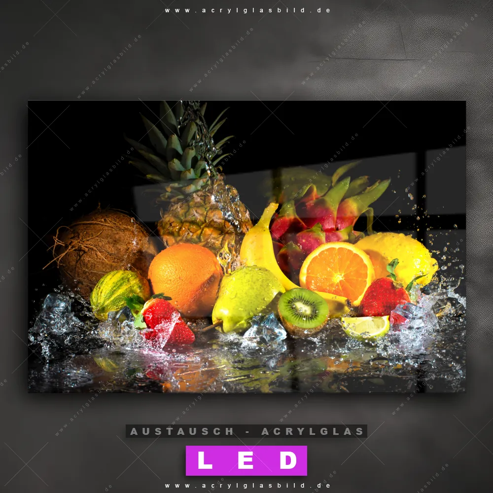 Wechsel-Acrylglas Canvalight® DIA | Obst-in spritzendem Wasser | Querformat
