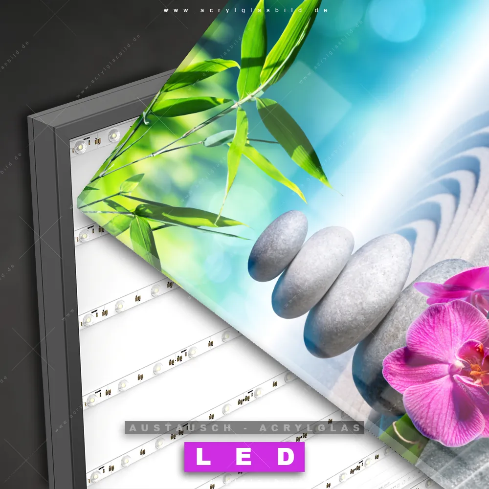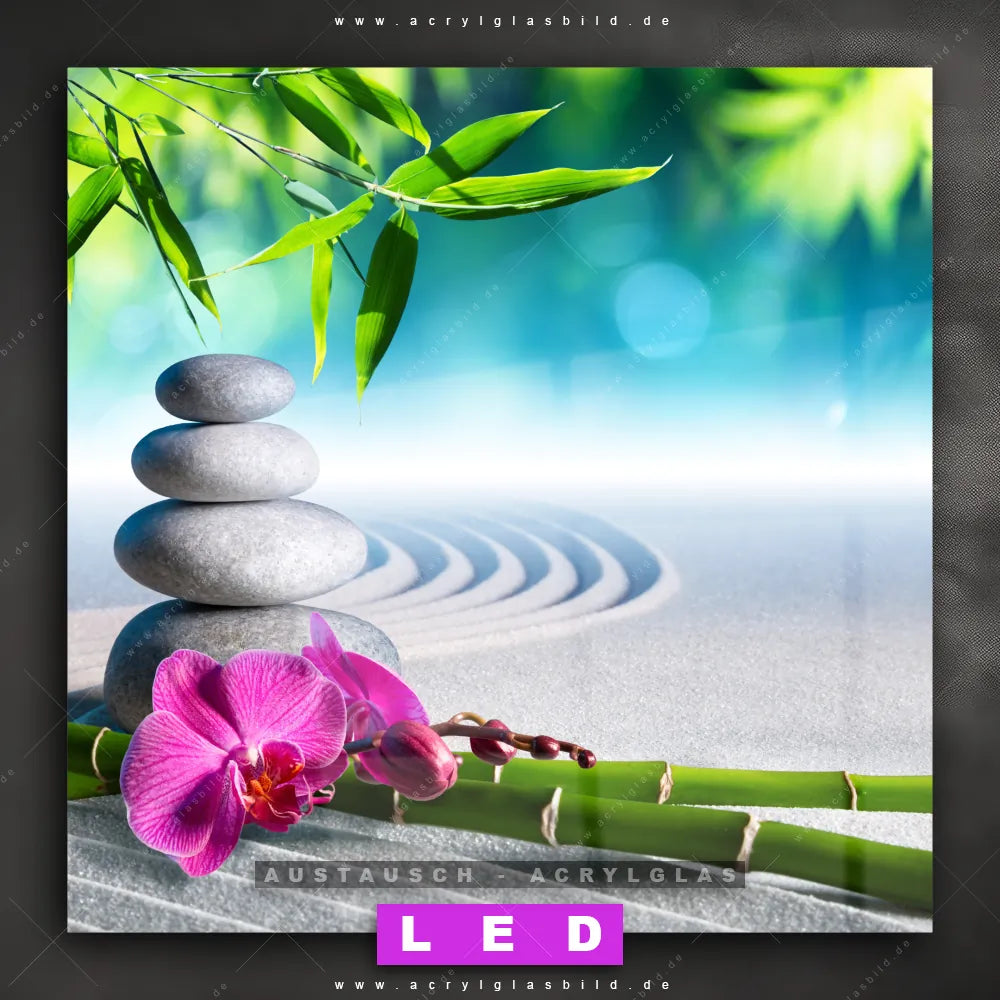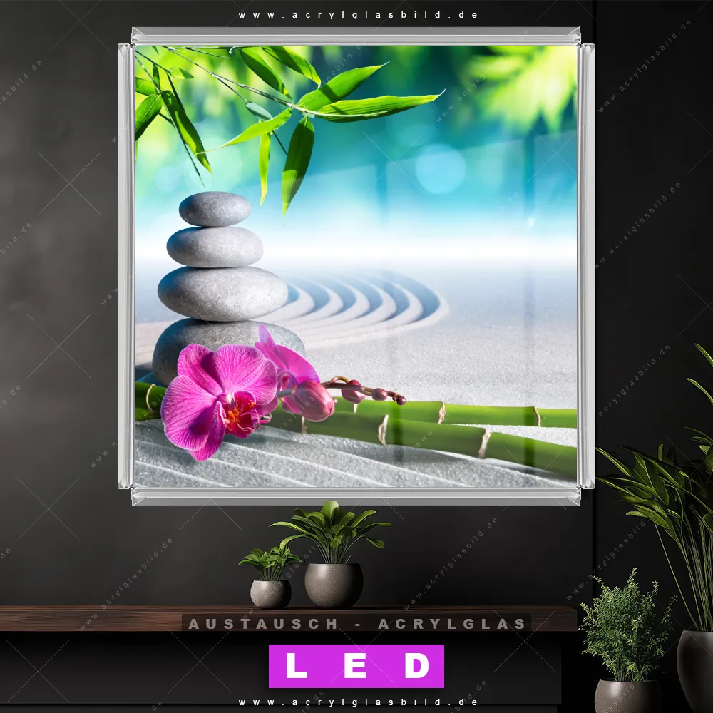 Wechsel-Acrylglas Canvalight® DIA | Orchidee & Zensteine | Quadrat