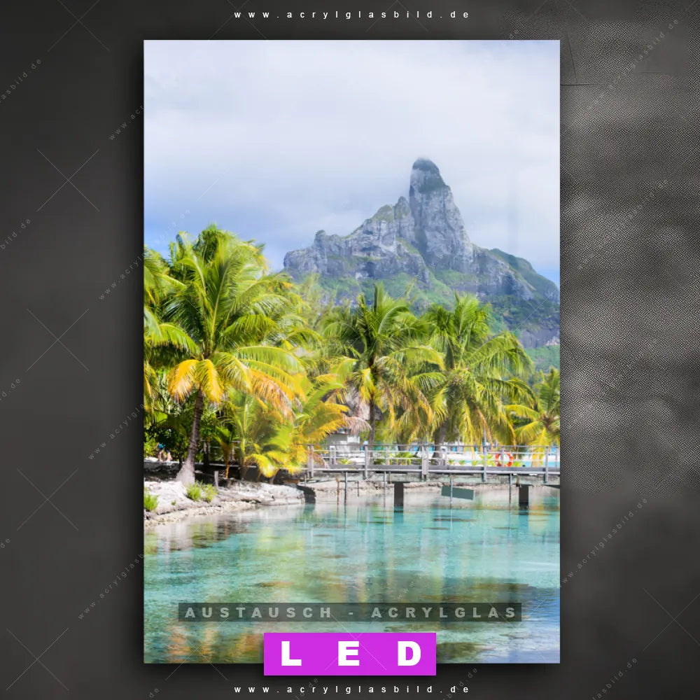 Begriffe wie Natur, Fluss, Palmen, Berg, Brücke, Steg, Asien, Sommer, Weg, Südsee - Karibik, Urlaub - Reisen haben dich auf der Suche nach deinem neuen Austausch-Acrylglasbild inspiriert? Dann sollte das Wechsel-Acrylglasbild Tropischer Traum für dein bereits vorhandenes LED Acrylglasbild Canvalight® DIA den Weg zu dir finden.