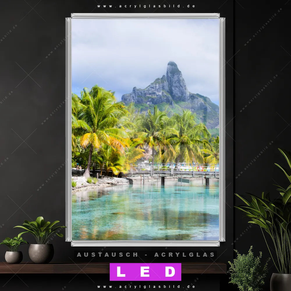 Wechsel-Acrylglas Canvalight® DIA | Palmen & Berg auf Insel | Hochformat