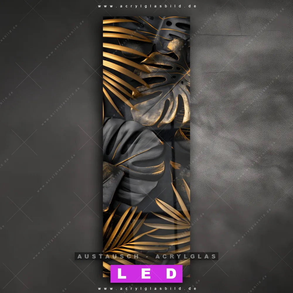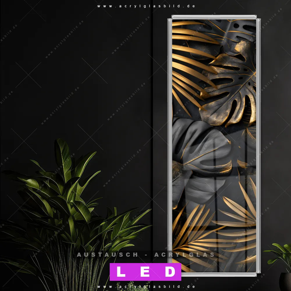 Wechsel-Acrylglas Canvalight® DIA | Palmenblätter Schwarz Gold | Schmal