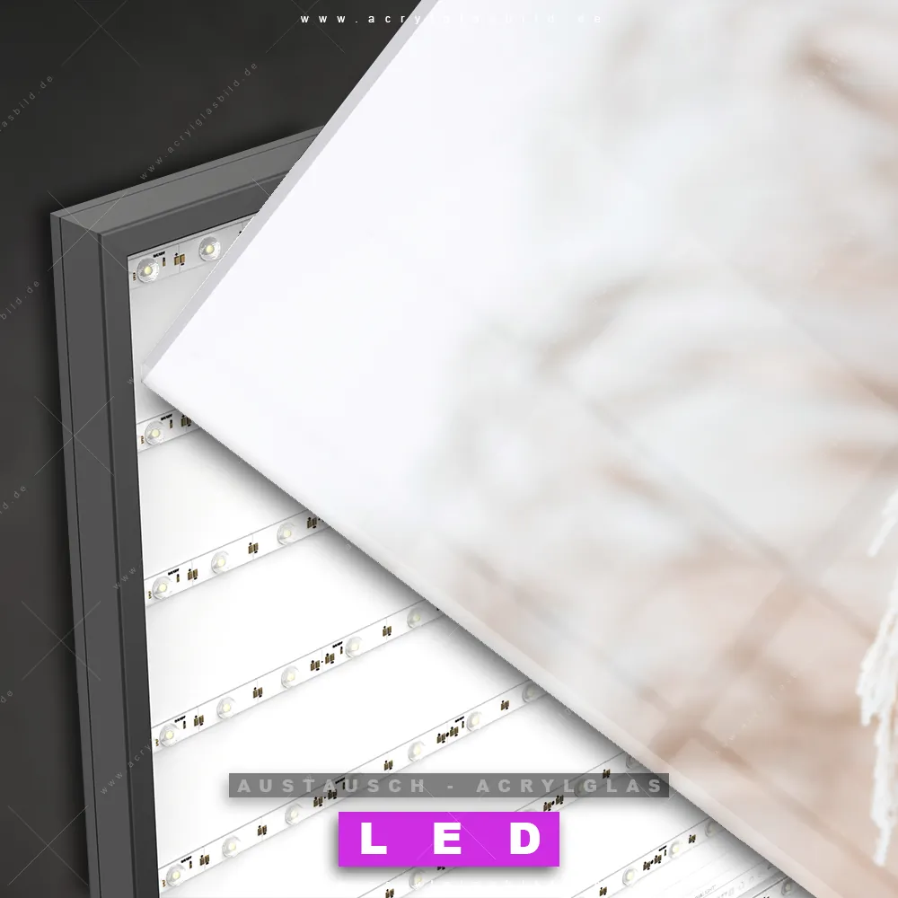 Begriffe wie Blume, Botanik, Pflanze, Natur, Nahaufnahme, Pampasgras, Gräser, Getreide haben dich auf der Suche nach deinem neuen Austausch-Acrylglasbild inspiriert? Dann sollte das Wechsel-Acrylglasbild Pflanze im Boho-Stil für dein bereits vorhandenes LED Acrylglasbild Canvalight® DIA den Weg zu dir finden.