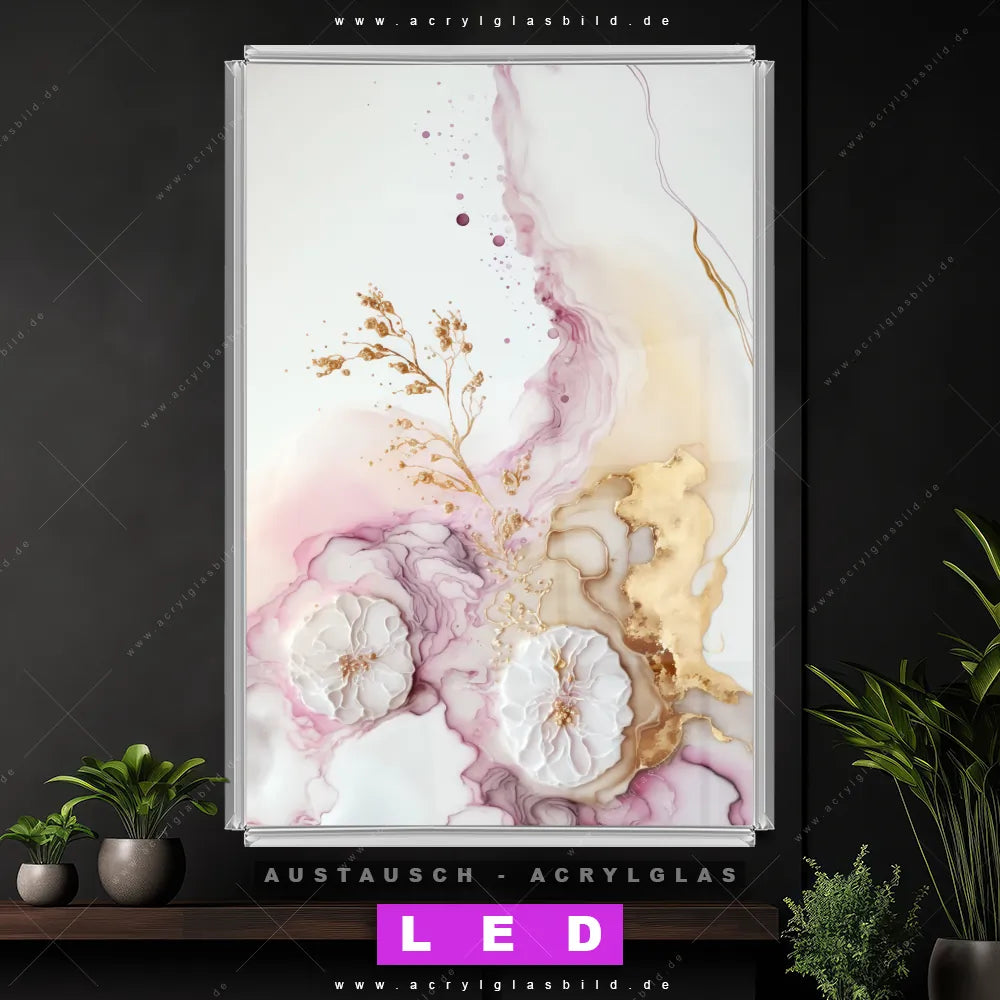 Wechsel-Acrylglas Canvalight® DIA | Pastell Blüten Moderne Kunst | Hochformat