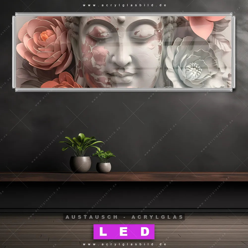 Wechsel-Acrylglas Canvalight® DIA | Pastellblüten und Buddha | Panorama