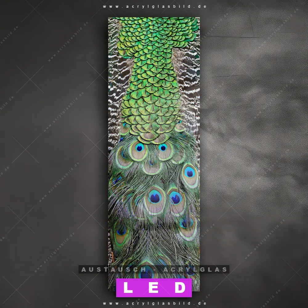 Begriffe wie Vogel, Pfau, Dschungel, Federn, Pfaufedern haben dich auf der Suche nach deinem neuen Austausch-Acrylglasbild inspiriert? Dann sollte das Wechsel-Acrylglasbild Gefieder eines Pfaus für dein bereits vorhandenes LED Acrylglasbild Canvalight® DIA den Weg zu dir finden.
