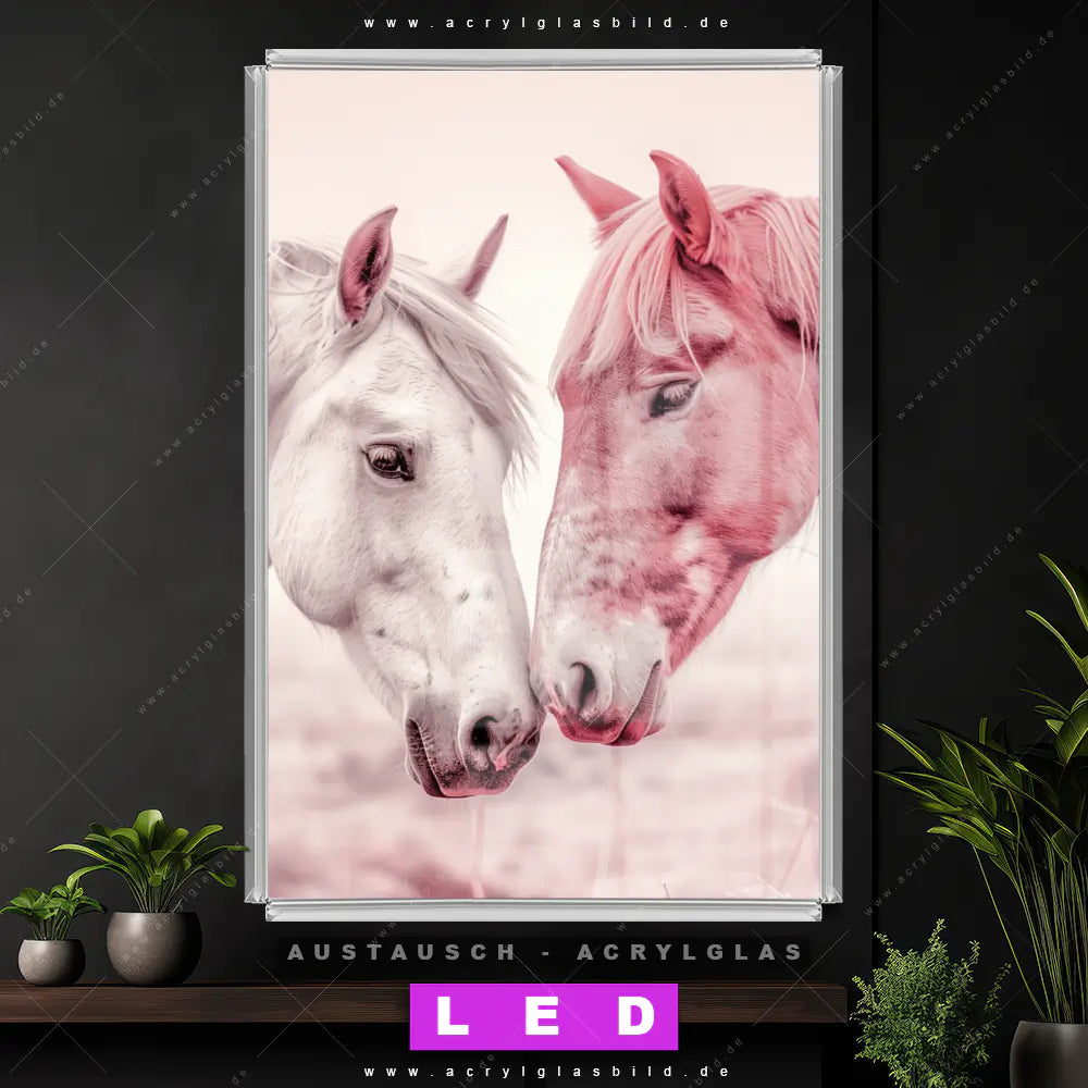 Begriffe wie Hengst, Stute, Pony, Ross, Pferd, Liebe, Harmonie, Freundschaft, Natur haben dich auf der Suche nach deinem neuen Austausch-Acrylglasbild inspiriert? Dann sollte das Wechsel-Acrylglasbild Zarte Pferdeliebe für dein bereits vorhandenes LED Acrylglasbild Canvalight® DIA den Weg zu dir finden.