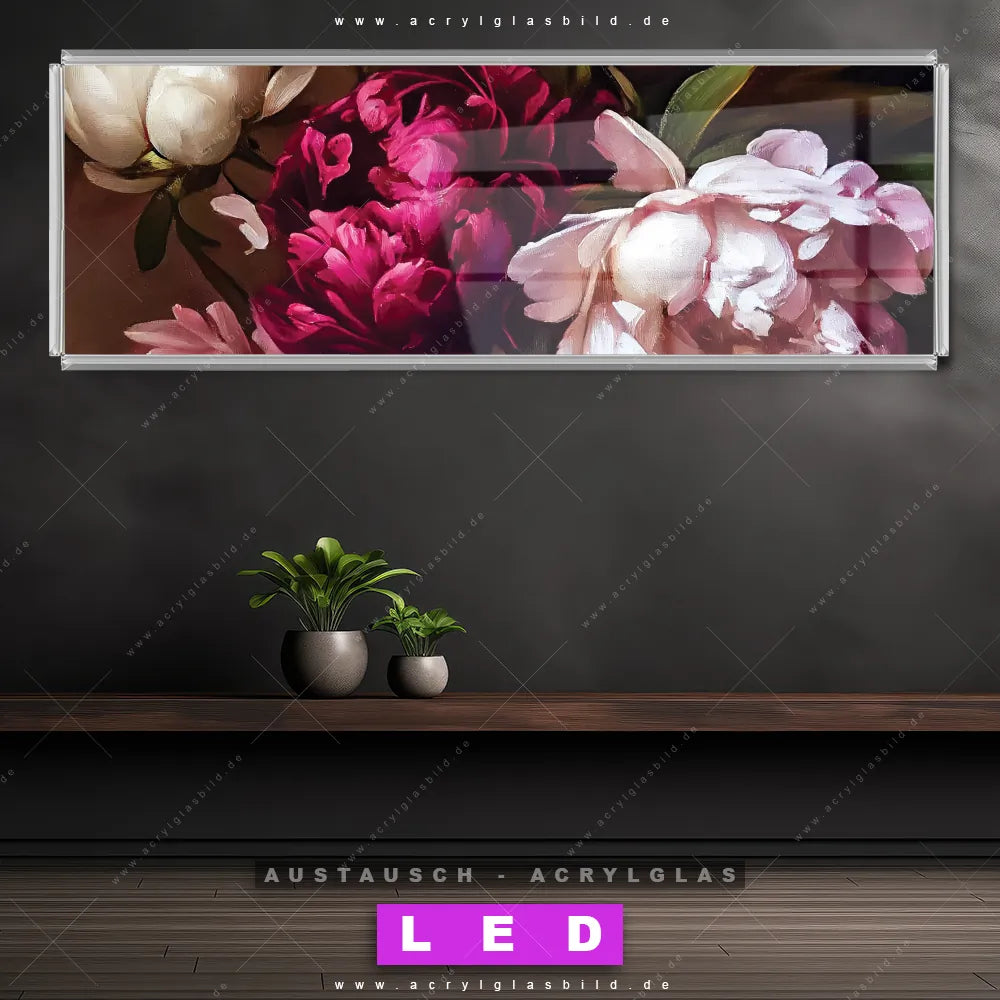 Wechsel-Acrylglas Canvalight® DIA | Pfingstrosen im Barockstil | Panorama