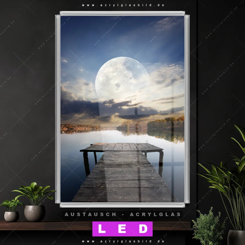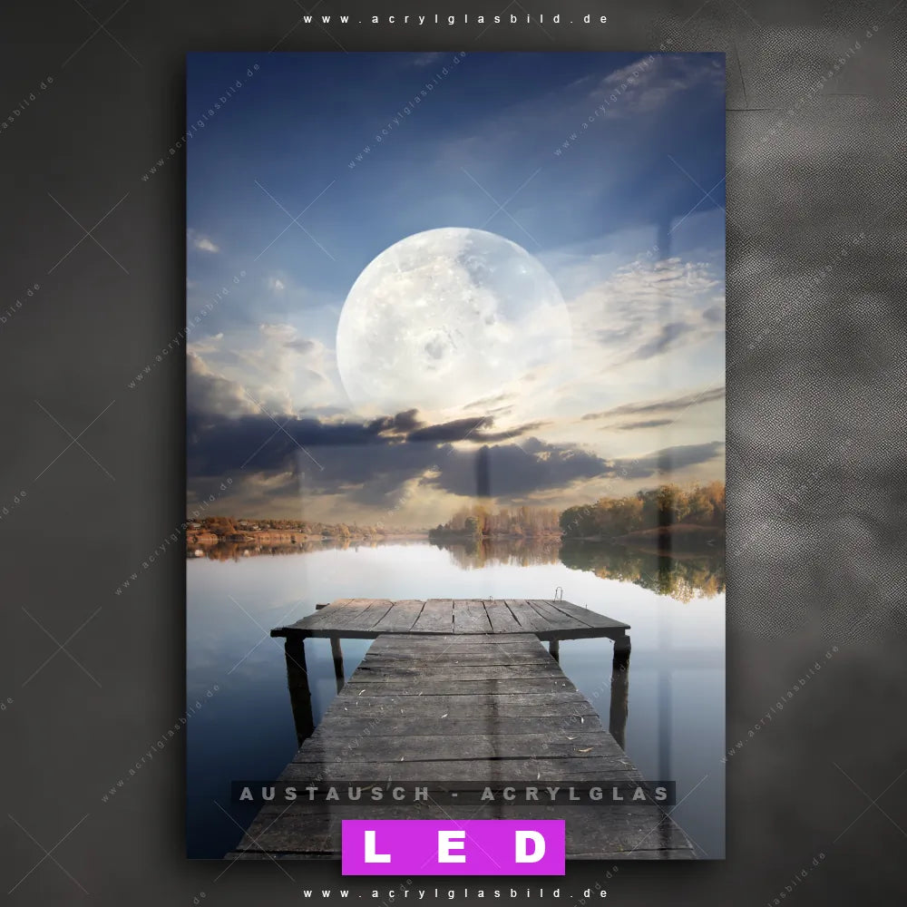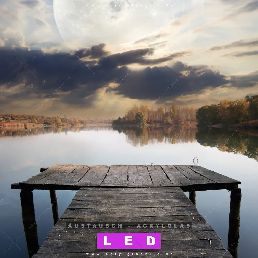 Begriffe wie Fluss, See, Steg, Mond, Angeln, Teich, Herbst, Fischen, Vollmond haben dich auf der Suche nach deinem neuen Austausch-Acrylglasbild inspiriert? Dann sollte das Wechsel-Acrylglasbild Angeln am Steg für dein bereits vorhandenes LED Acrylglasbild Canvalight® DIA den Weg zu dir finden.