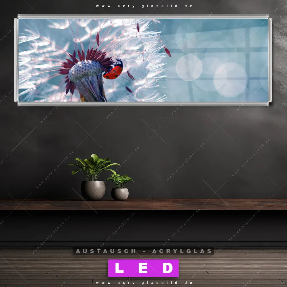 Wechsel-Acrylglas Canvalight® DIA | Pusteblume & Marienkäfer | Panorama