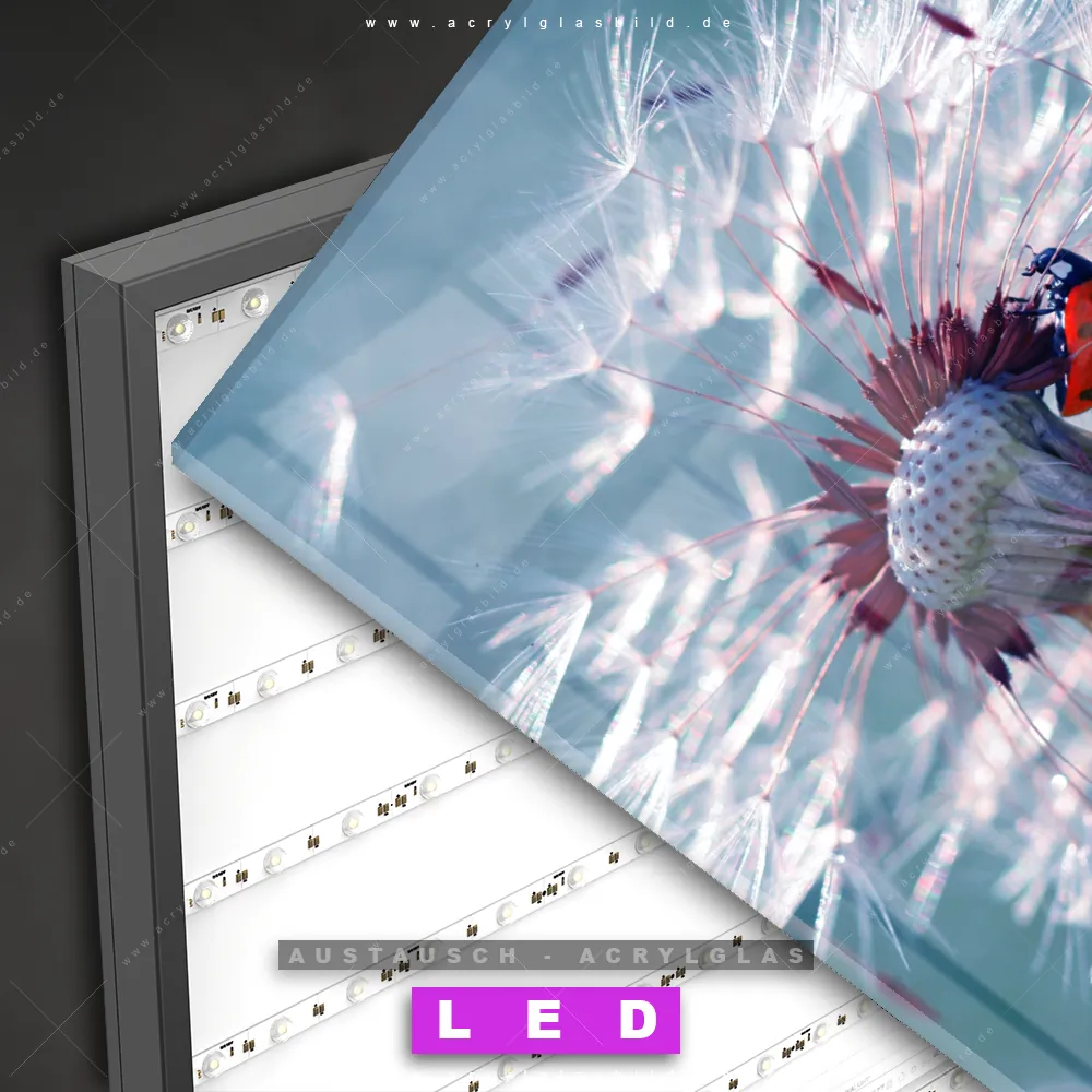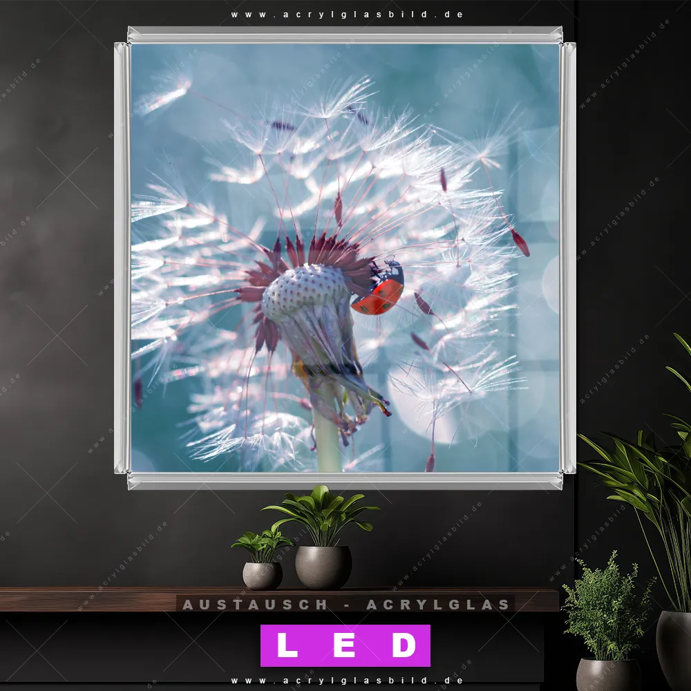 Wechsel-Acrylglas Canvalight® DIA | Pusteblume & Marienkäfer | Quadrat