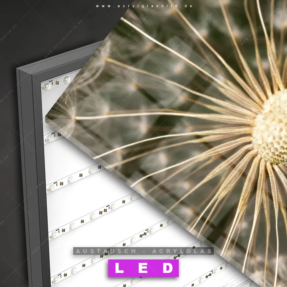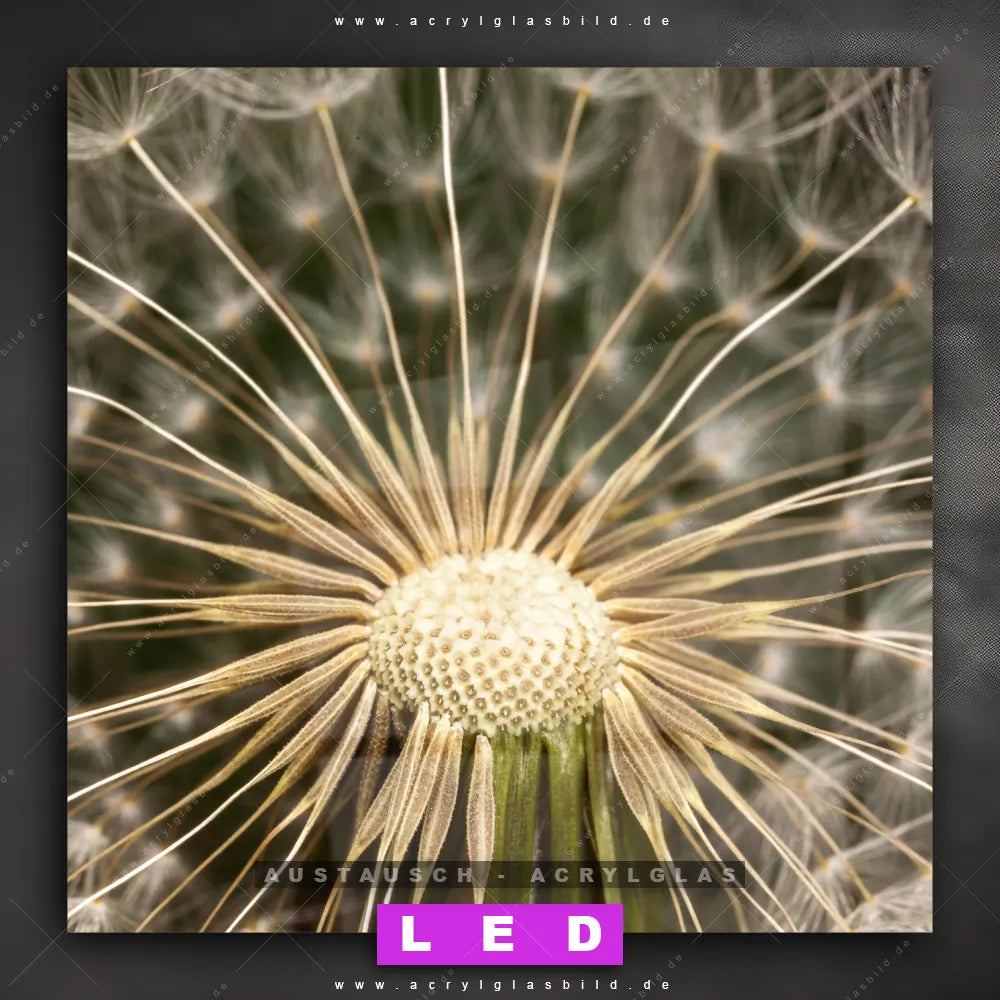 Begriffe wie Blume, Botanik, Pflanze, Natur, Nahaufnahme, Pusteblume, Dandelion, Löwenzahn haben dich auf der Suche nach deinem neuen Austausch-Acrylglasbild inspiriert? Dann sollte das Wechsel-Acrylglasbild Pusteblume mit einem Samenkreis für dein bereits vorhandenes LED Acrylglasbild Canvalight® DIA den Weg zu dir finden.