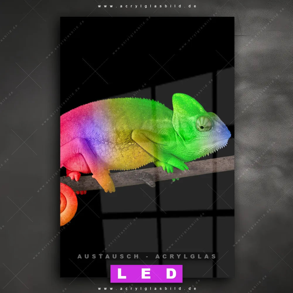 Begriffe wie Tiere, Farbe, bunt, Chamäleon, Regenbogen, Pop Art haben dich auf der Suche nach deinem neuen Austausch-Acrylglasbild inspiriert? Dann sollte das Wechsel-Acrylglasbild Chamäleon Neonfarben für dein bereits vorhandenes LED Acrylglasbild Canvalight® DIA den Weg zu dir finden.