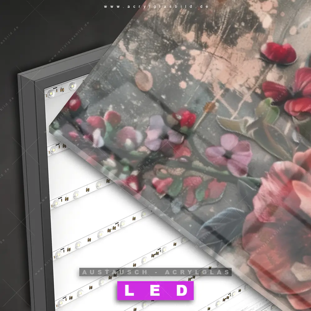 Begriffe wie Pflanze, Natur, Blüten, Blumen, Shabby Chic haben dich auf der Suche nach deinem neuen Austausch-Acrylglasbild inspiriert? Dann sollte das Wechsel-Acrylglasbild Urbaner Blumenzauber für dein bereits vorhandenes LED Acrylglasbild Canvalight® DIA den Weg zu dir finden.