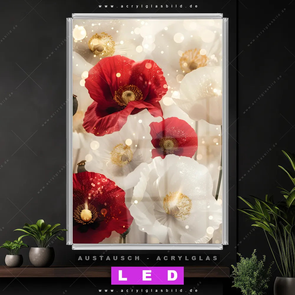 Wechsel-Acrylglas Canvalight® DIA | Rote und weiße Mohnblumen | Hochformat