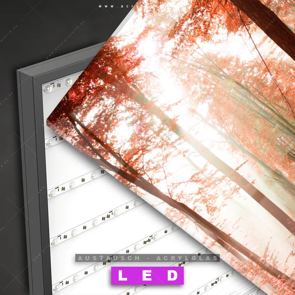 Begriffe wie Natur, Baum, Buche, Herbst, Blätter haben dich auf der Suche nach deinem neuen Austausch-Acrylglasbild inspiriert? Dann sollte das Wechsel-Acrylglasbild Wald im Herbst für dein bereits vorhandenes LED Acrylglasbild Canvalight® DIA den Weg zu dir finden.