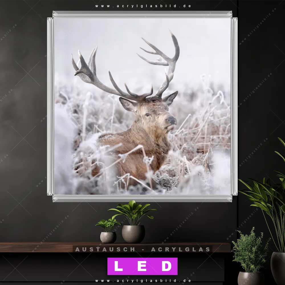 Wechsel-Acrylglas Canvalight® DIA | Rothirsch im Winter | Quadrat