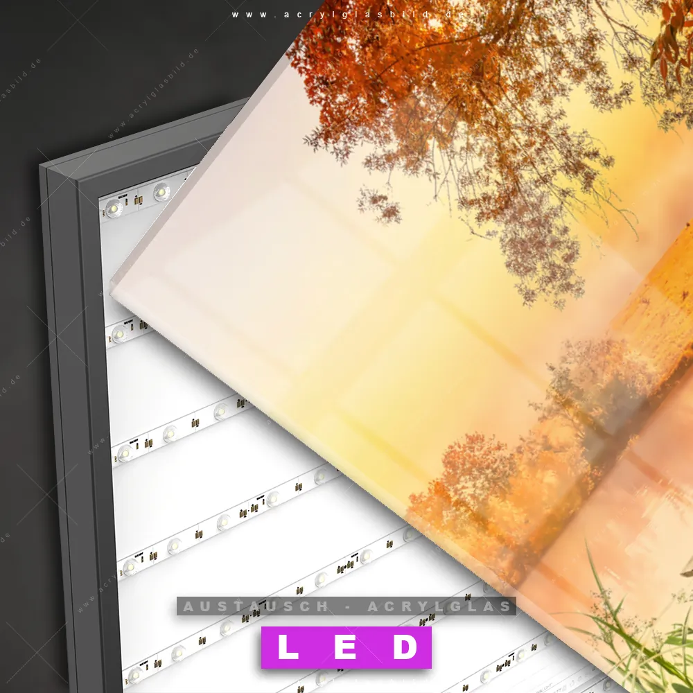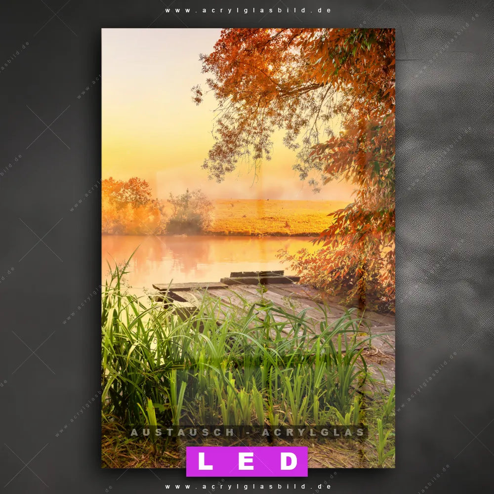 Begriffe wie Sonnenuntergang, Sonnenaufgang, Wasser, Fluss, Nebel, Morgenstimmung, See, Steg, Angeln, Teich, Herbst, fischen haben dich auf der Suche nach deinem neuen Austausch-Acrylglasbild inspiriert? Dann sollte das Wechsel-Acrylglasbild Sonnenaufgang am See für dein bereits vorhandenes LED Acrylglasbild Canvalight® DIA den Weg zu dir finden.