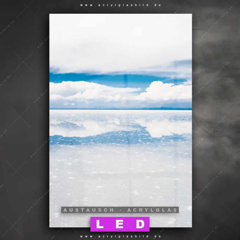 Begriffe wie Natur, See, Himmel, Spiegelung, Sehenswürdigkeit, Bolivien, Wasser, Wasserspiegelung haben dich auf der Suche nach deinem neuen Austausch-Acrylglasbild inspiriert? Dann sollte das Wechsel-Acrylglasbild Salzsee Reflexion für dein bereits vorhandenes LED Acrylglasbild Canvalight® DIA den Weg zu dir finden.