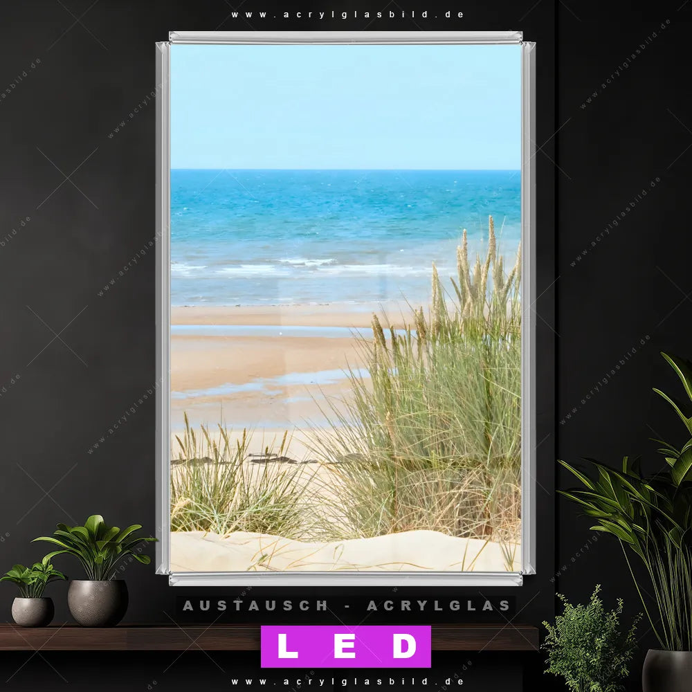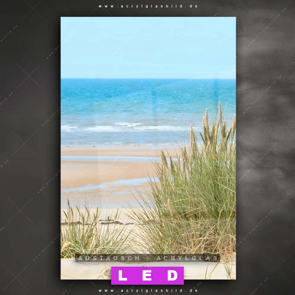 Begriffe wie Deutschland, Sommer, Urlaub - Reisen, Ostsee - Nordsee, Dünen, Gräser haben dich auf der Suche nach deinem neuen Austausch-Acrylglasbild inspiriert? Dann sollte das Wechsel-Acrylglasbild Ostseestrand mit Gräsern für dein bereits vorhandenes LED Acrylglasbild Canvalight® DIA den Weg zu dir finden.