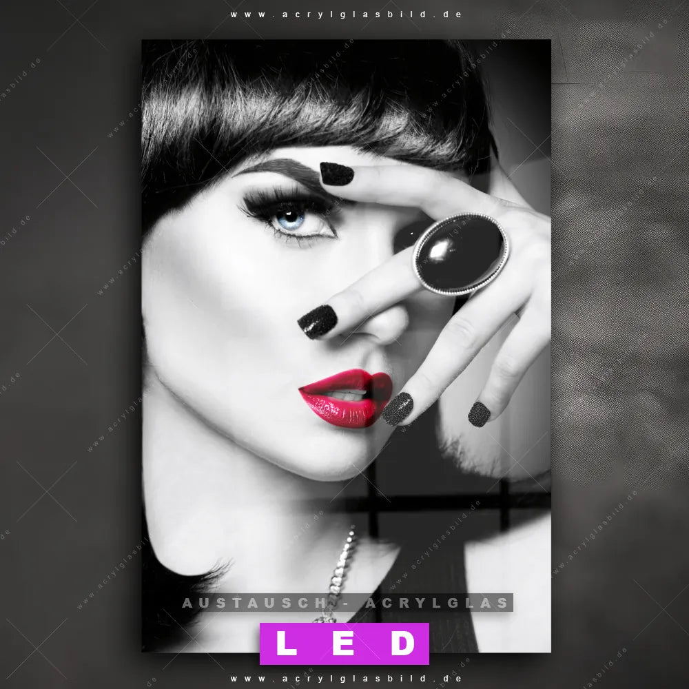 Begriffe wie Frau, Lippen, Mund, Porträt, modern, Beauty, Schönheit, Mädchen haben dich auf der Suche nach deinem neuen Austausch-Acrylglasbild inspiriert? Dann sollte das Wechsel-Acrylglasbild sinnlicher Blick für dein bereits vorhandenes LED Acrylglasbild Canvalight® DIA den Weg zu dir finden.