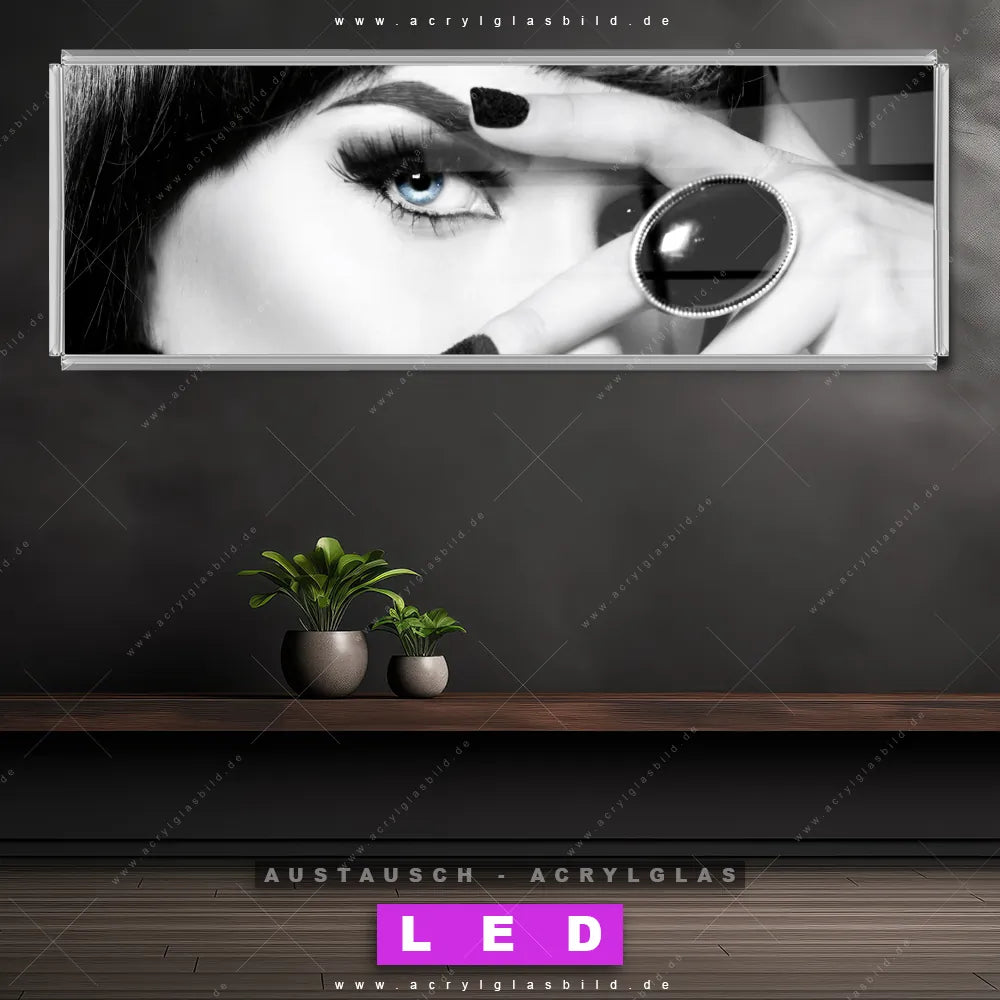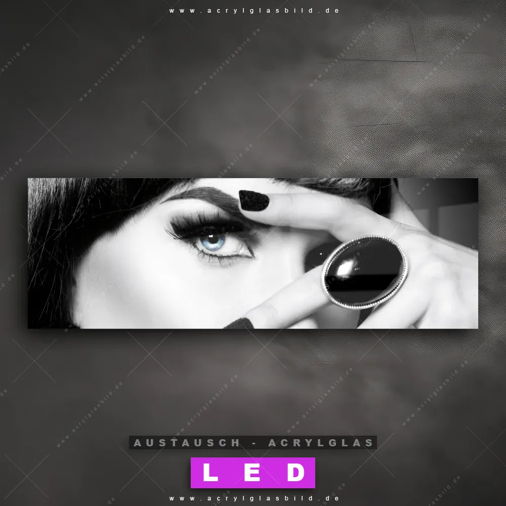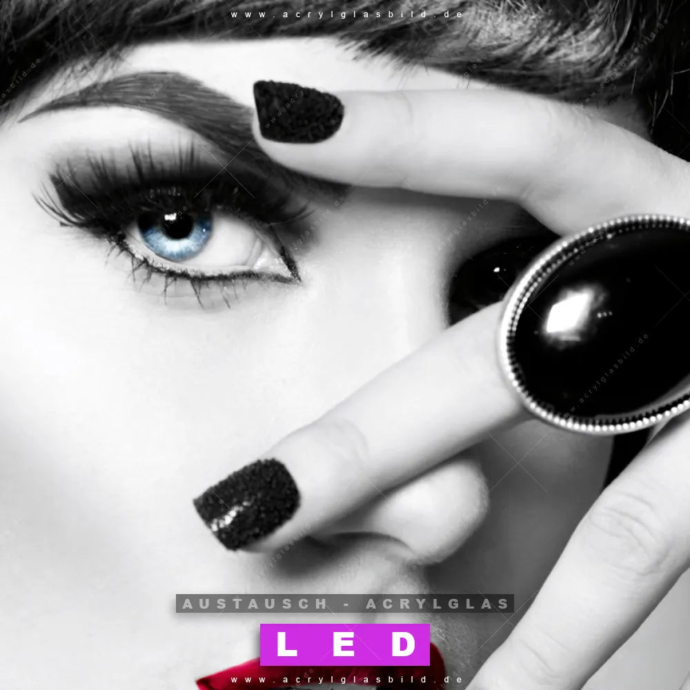 Begriffe wie Frau, Lippen, Mund, Porträt, modern, Beauty, Schönheit, Mädchen haben dich auf der Suche nach deinem neuen Austausch-Acrylglasbild inspiriert? Dann sollte das Wechsel-Acrylglasbild sinnlicher Blick für dein bereits vorhandenes LED Acrylglasbild Canvalight® DIA den Weg zu dir finden.