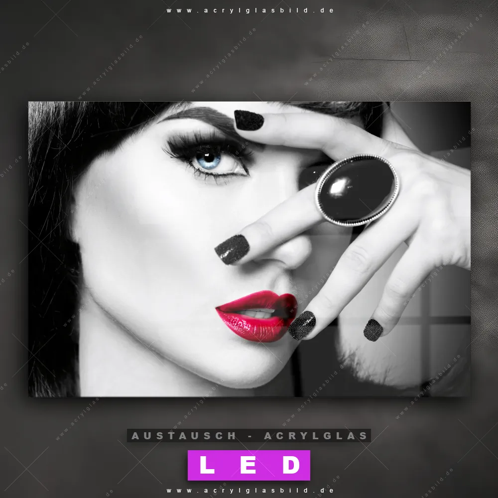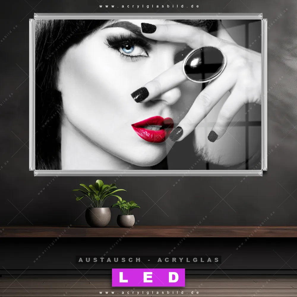 Begriffe wie Frau, Lippen, Mund, Porträt, modern, Beauty, Schönheit, Mädchen haben dich auf der Suche nach deinem neuen Austausch-Acrylglasbild inspiriert? Dann sollte das Wechsel-Acrylglasbild sinnlicher Blick für dein bereits vorhandenes LED Acrylglasbild Canvalight® DIA den Weg zu dir finden.