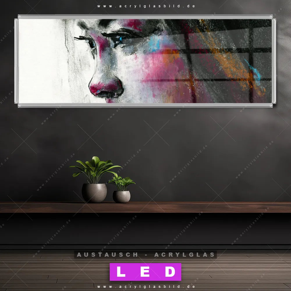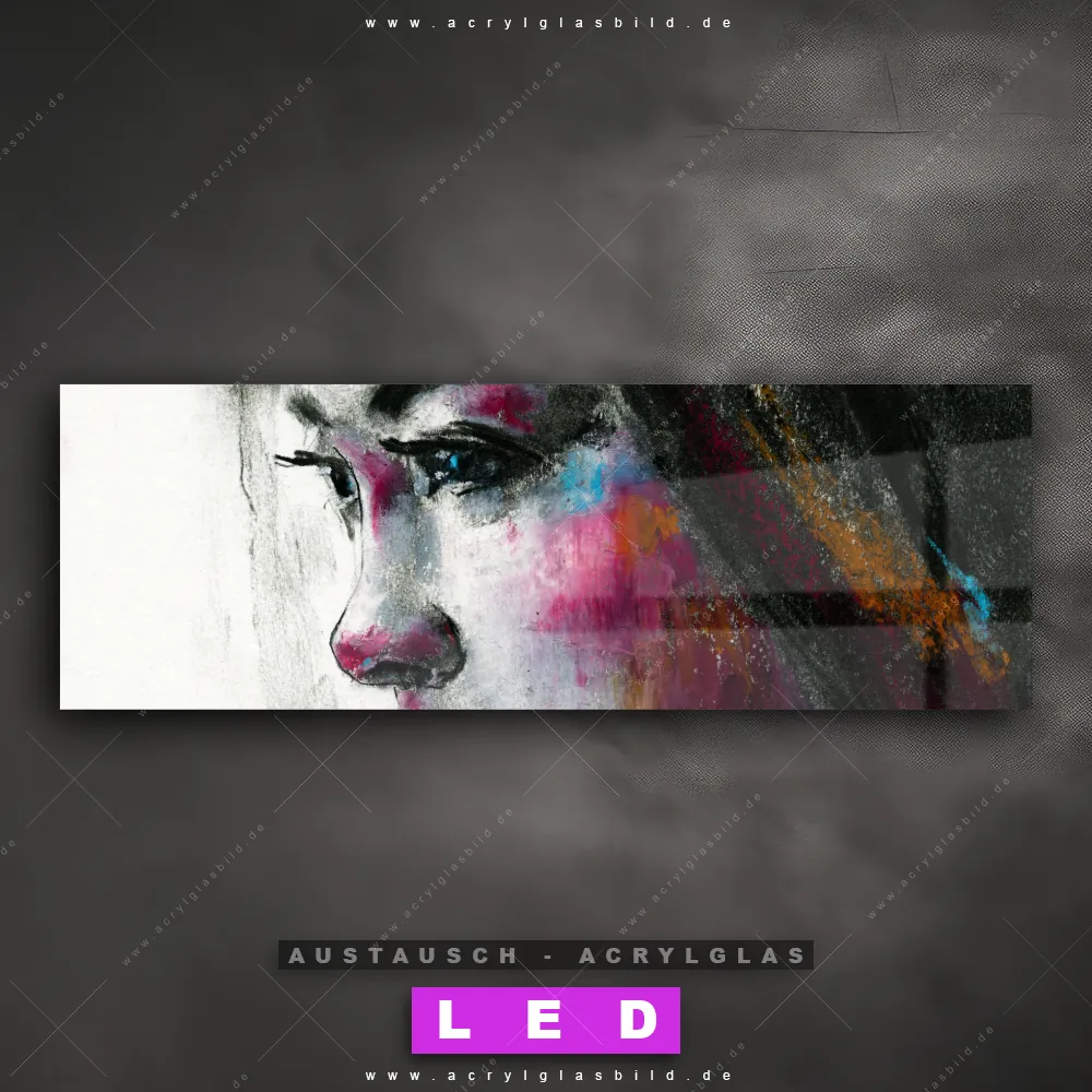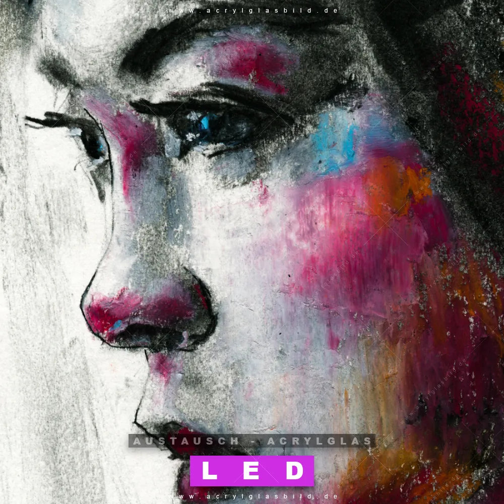 Begriffe wie Abstrakt, Modern, Kunst, Gemälde, Ölfarbe, Leinwand, Frau, Portrait, Geheimnis, schweigen, Lippen haben dich auf der Suche nach deinem neuen Austausch-Acrylglasbild inspiriert? Dann sollte das Wechsel-Acrylglasbild nachdenkliches Mädchen für dein bereits vorhandenes LED Acrylglasbild Canvalight® DIA den Weg zu dir finden.
