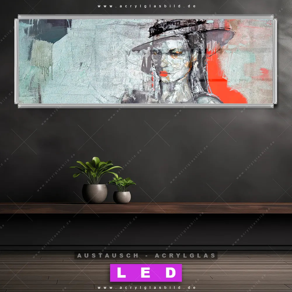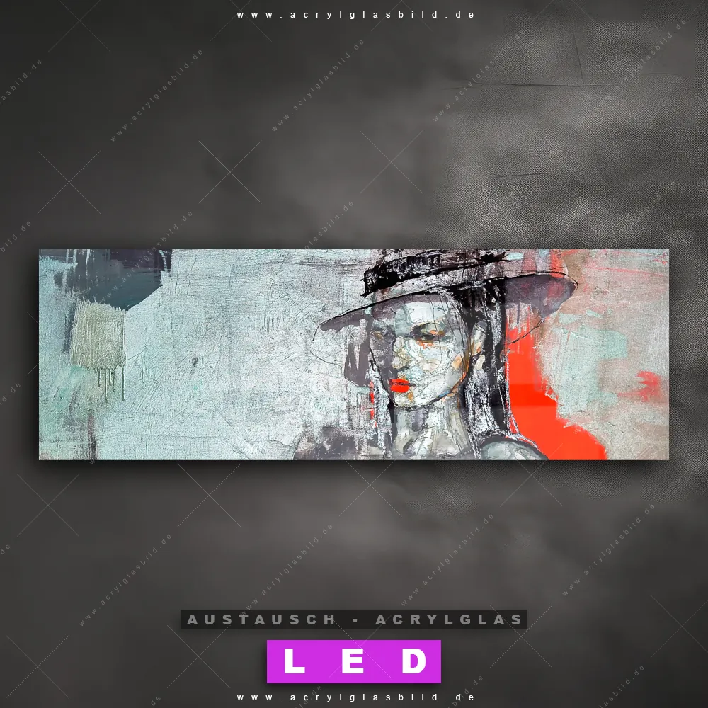 Begriffe wie Abstrakt, Modern, Kunst, Gemälde, Leinwand, Frau, Portrait, Geheimnis, schweigen, Lippen haben dich auf der Suche nach deinem neuen Austausch-Acrylglasbild inspiriert? Dann sollte das Wechsel-Acrylglasbild Leise Frau abstrakt für dein bereits vorhandenes LED Acrylglasbild Canvalight® DIA den Weg zu dir finden.