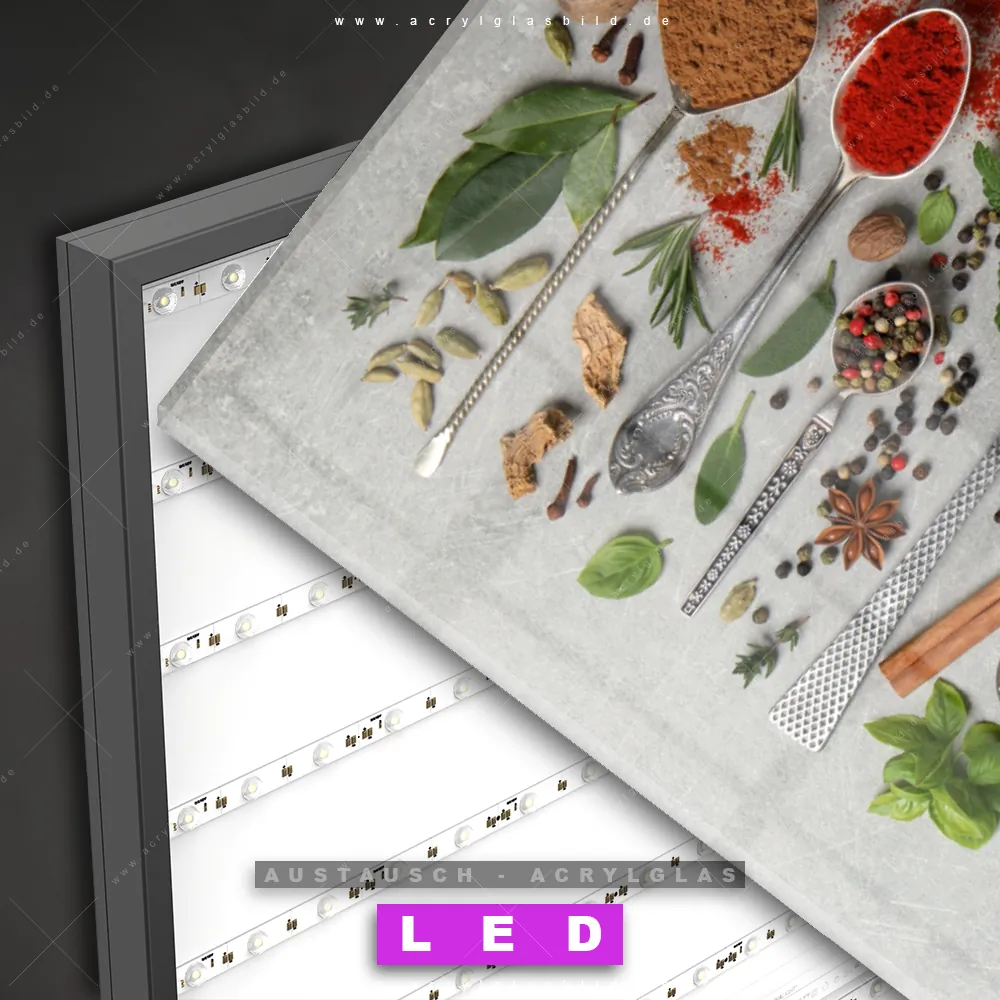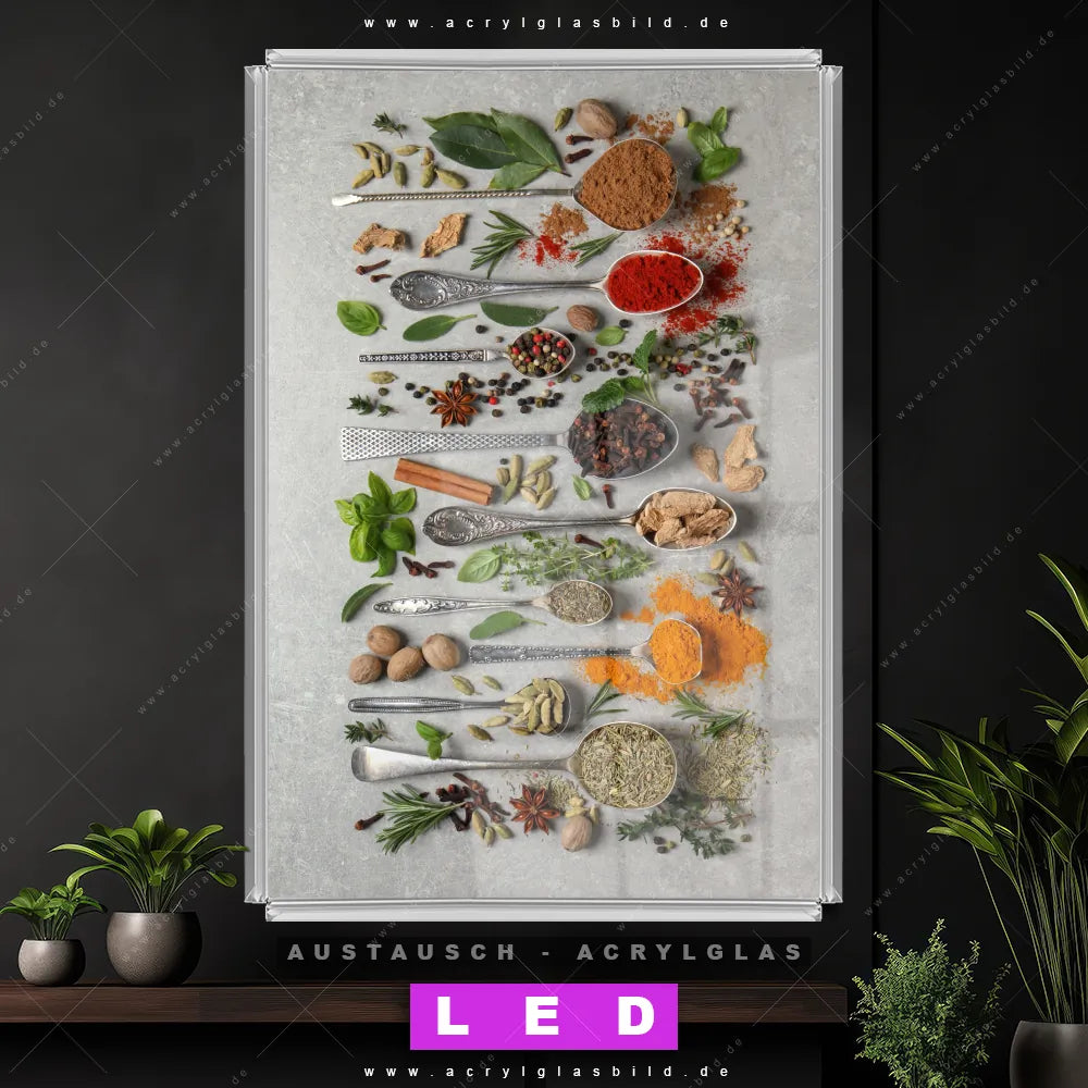 Wechsel-Acrylglas Canvalight® DIA | Silberlöffel mit Gewürzen | Hochformat