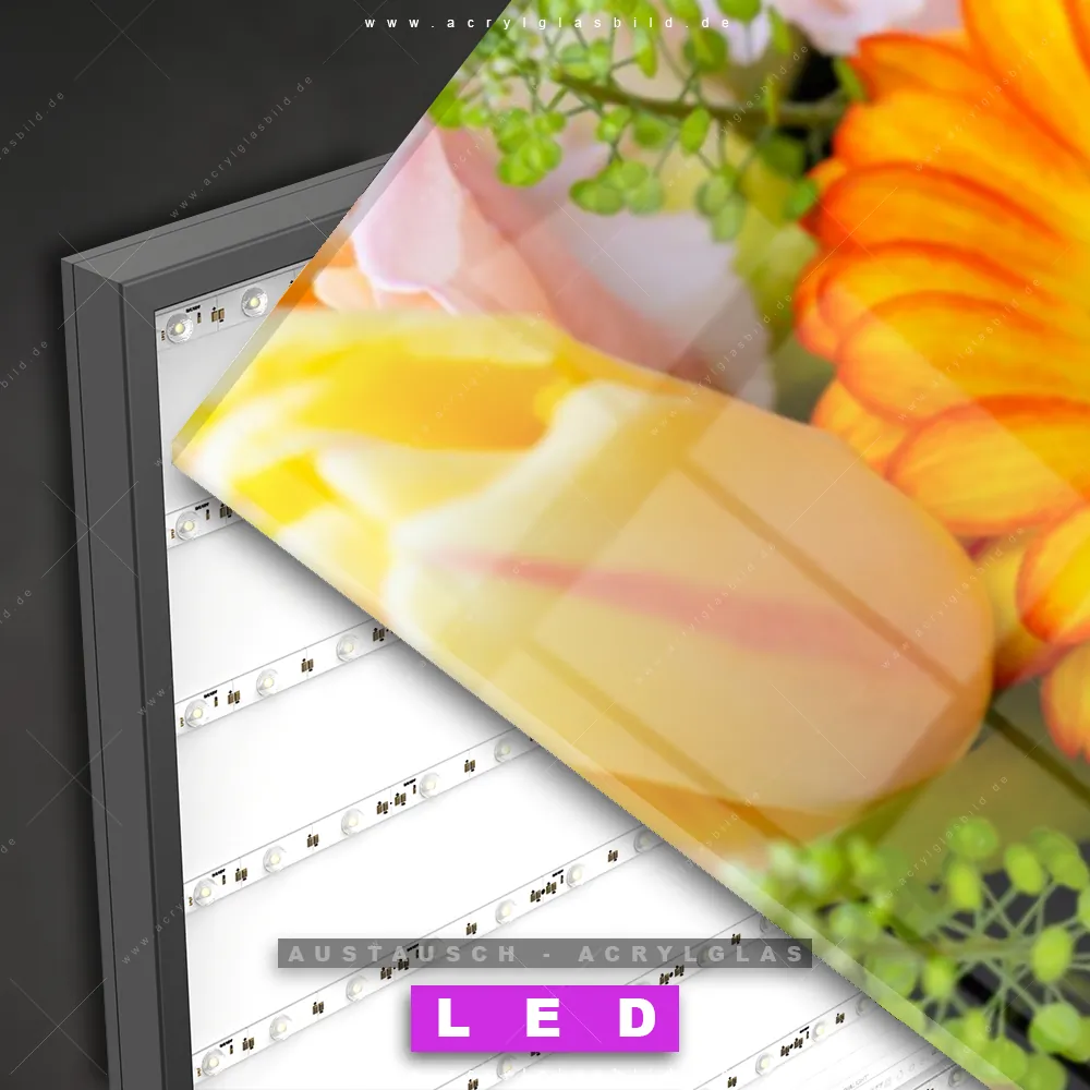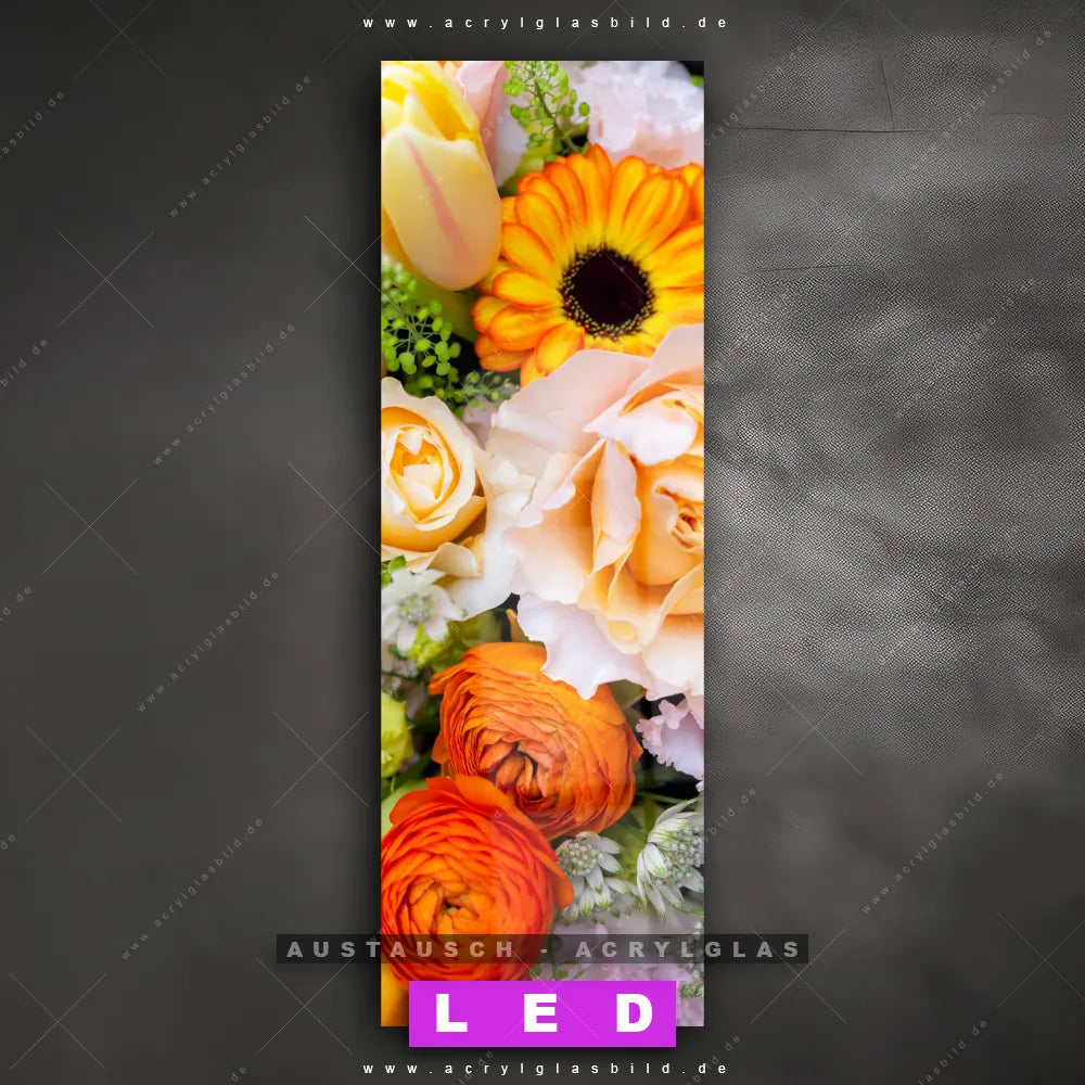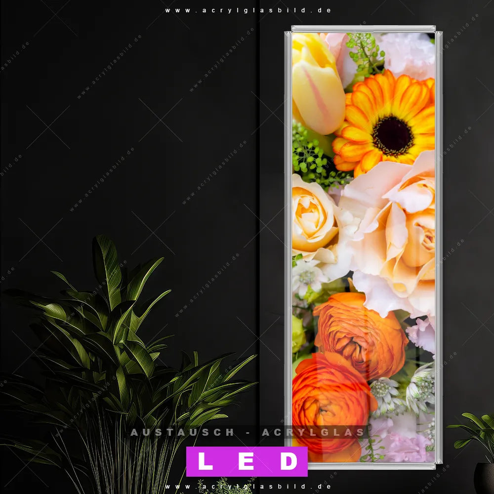 Begriffe wie Pflanze, Nahaufnahme, Blüten, Rosen, Pfingstrosen, Blumenstrauß haben dich auf der Suche nach deinem neuen Austausch-Acrylglasbild inspiriert? Dann sollte das Wechsel-Acrylglasbild Blüten in sommerlichen Farben für dein bereits vorhandenes LED Acrylglasbild Canvalight® DIA den Weg zu dir finden.