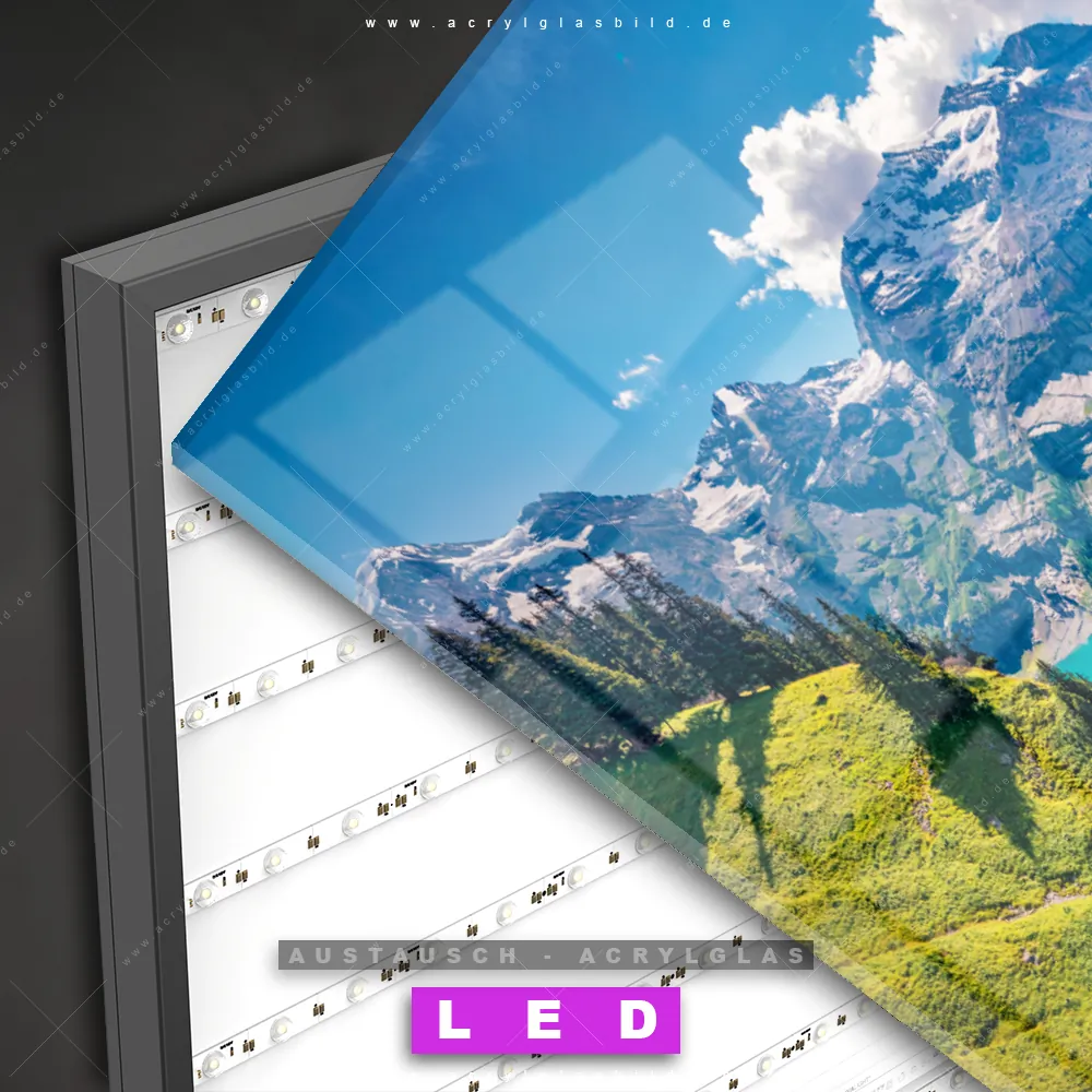 Austausch-Acrylglas-Druck 3mm für LED Bilder mit DIA Klapprahmen-Profil