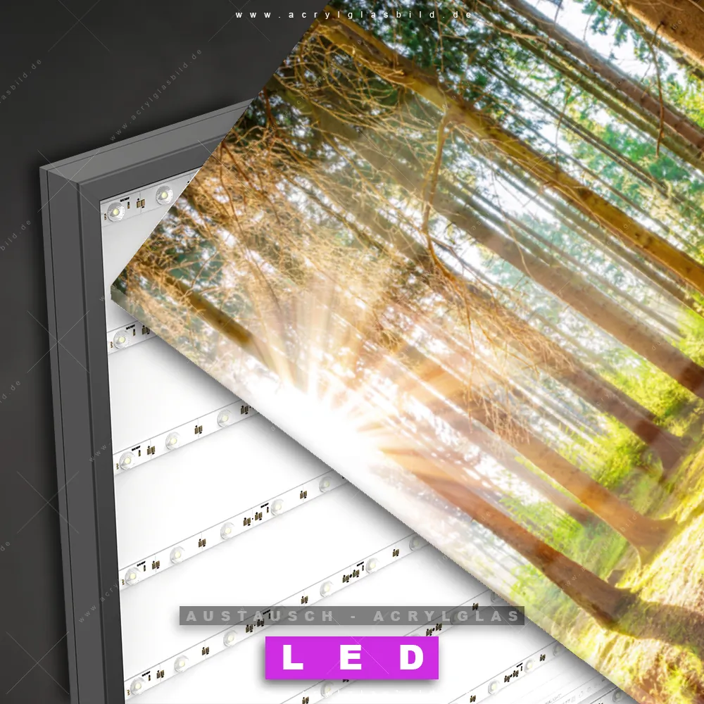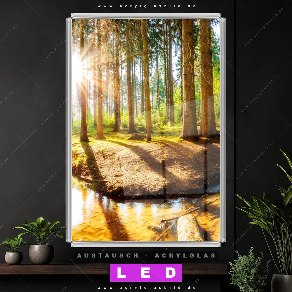 Wechsel-Acrylglas Canvalight® DIA | Sonniger Wald | Hochformat