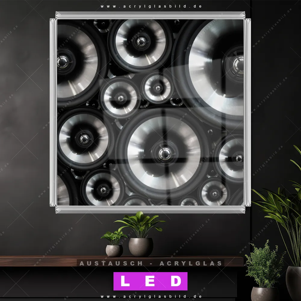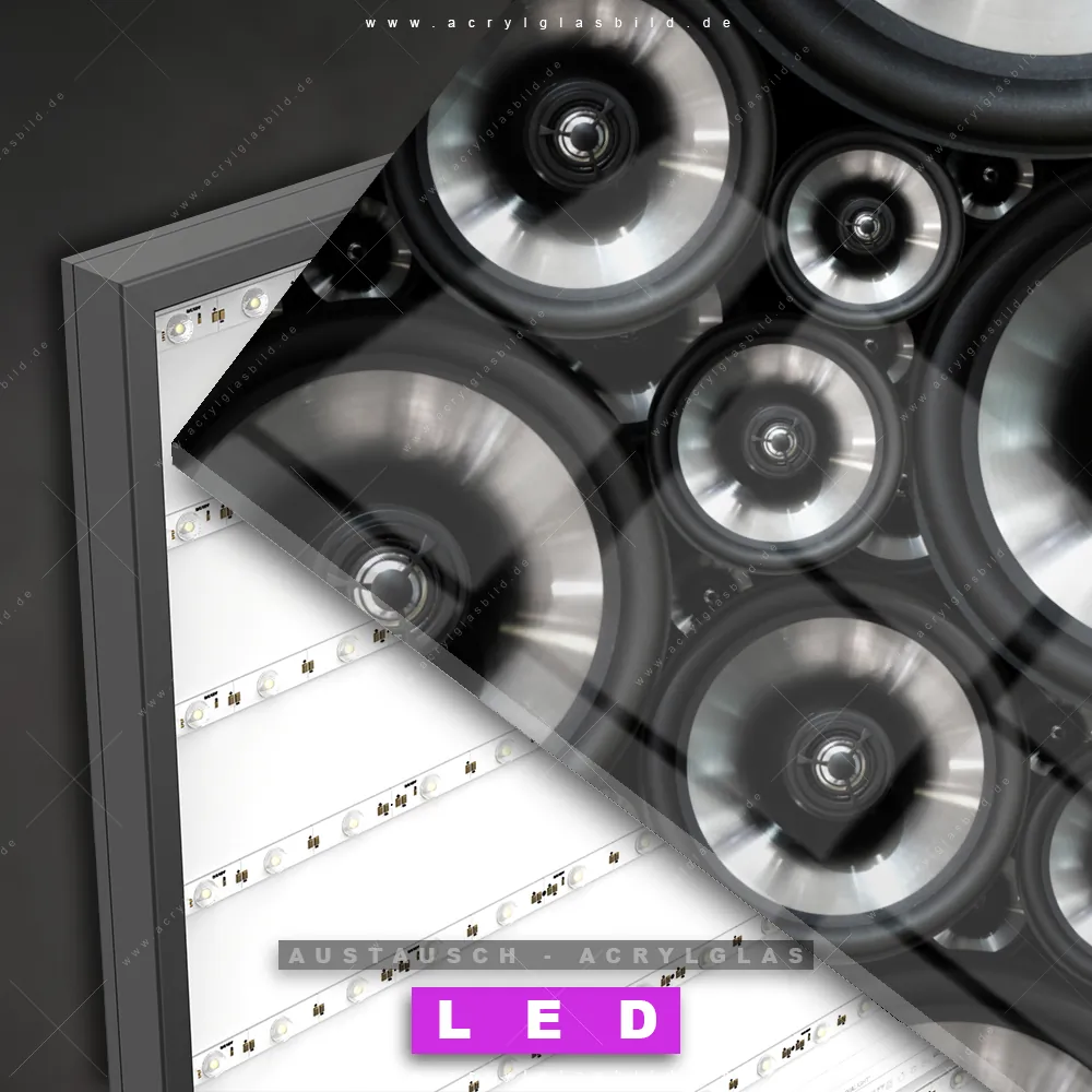 Begriffe wie Musik, musikalisch, Lautsprecher, Verstärker haben dich auf der Suche nach deinem neuen Austausch-Acrylglasbild inspiriert? Dann sollte das Wechsel-Acrylglasbild Bassbox Musikboxen für dein bereits vorhandenes LED Acrylglasbild Canvalight® DIA den Weg zu dir finden.