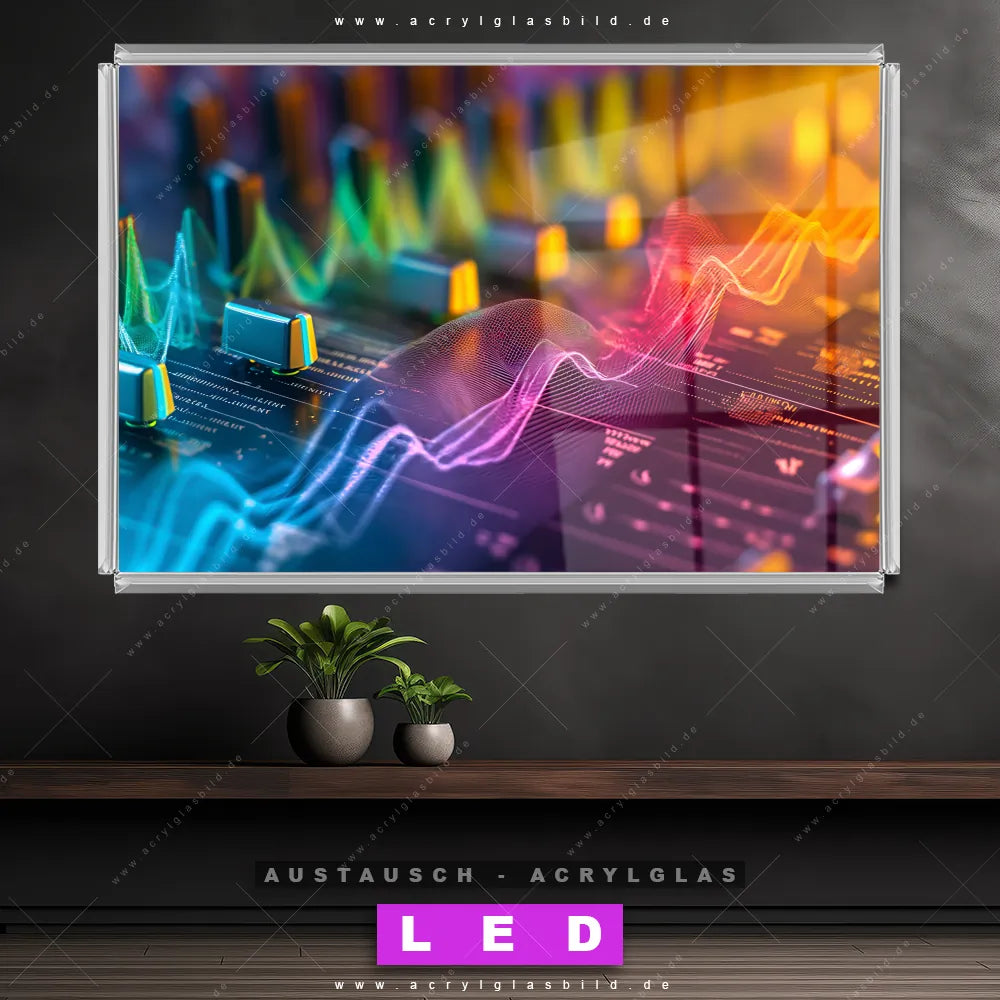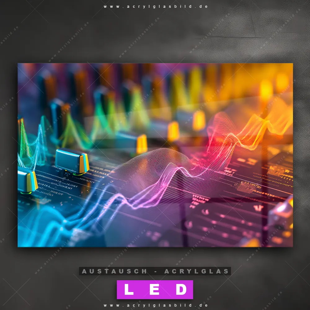 Begriffe wie Musik, musikalisch, Lautsprecher, Verstärker, Sound haben dich auf der Suche nach deinem neuen Austausch-Acrylglasbild inspiriert? Dann sollte das Wechsel-Acrylglasbild Bunte Sound Waves über Mischpult für dein bereits vorhandenes LED Acrylglasbild Canvalight® DIA den Weg zu dir finden.