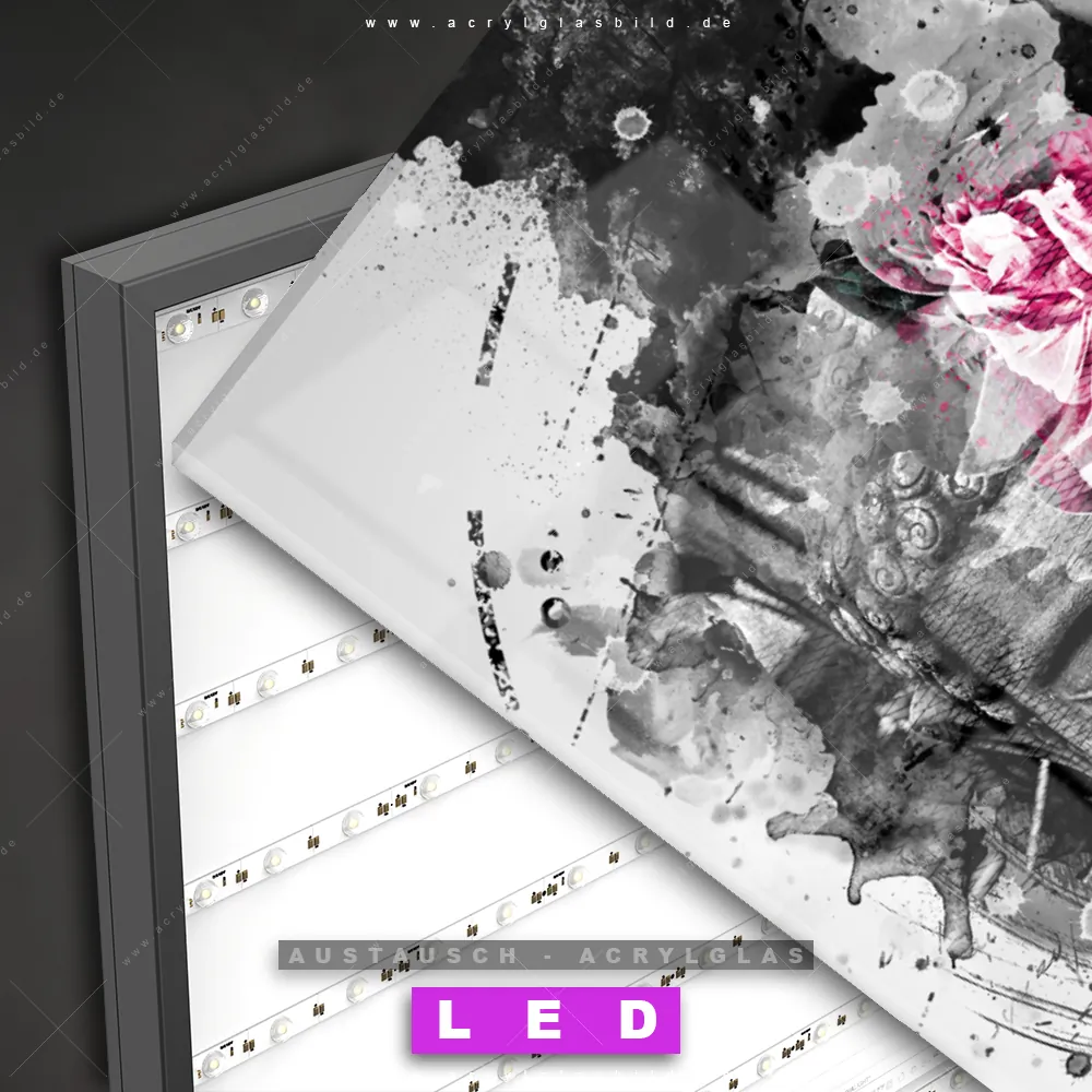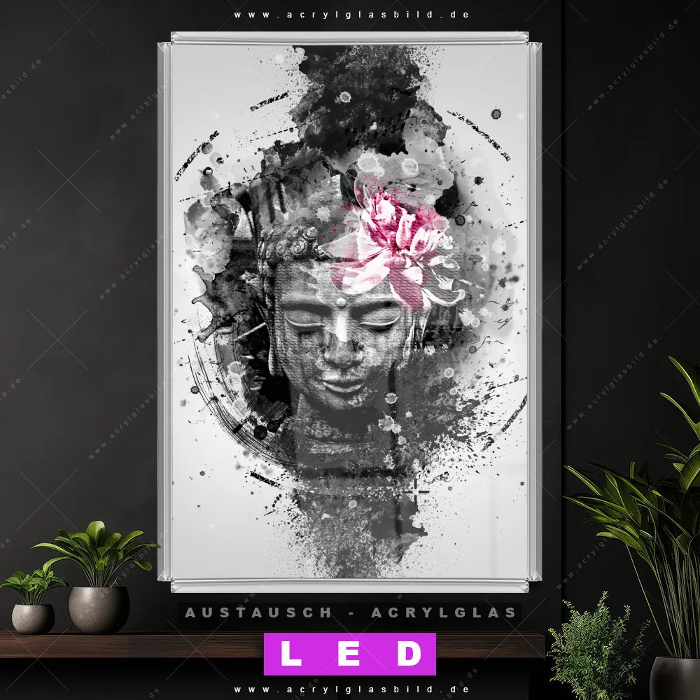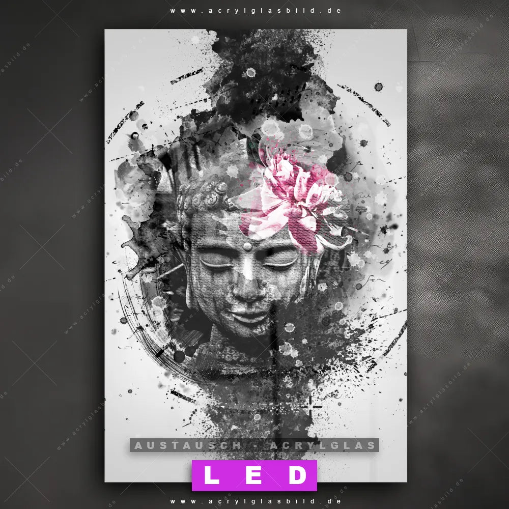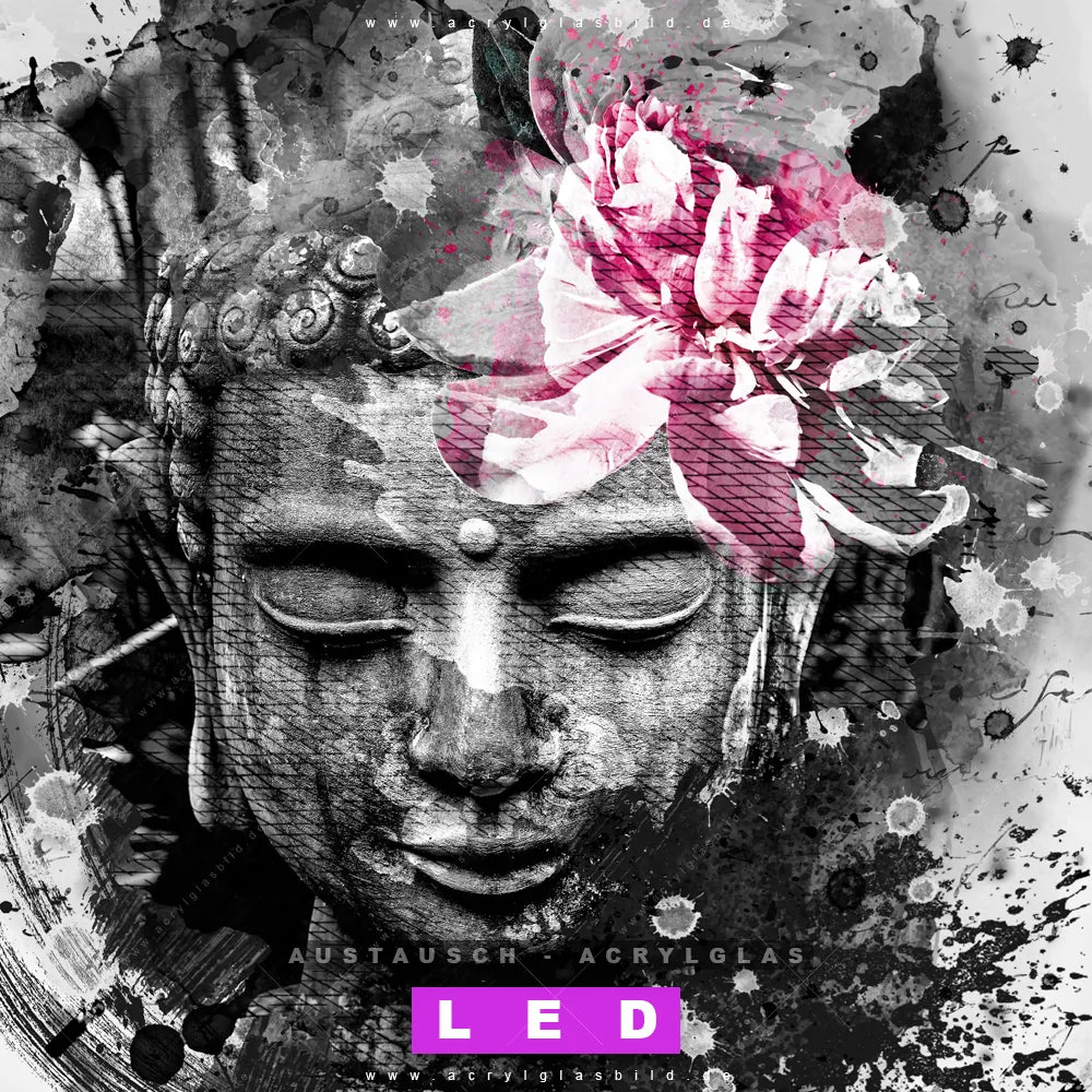 Begriffe wie Grunge, Streetart, modern, Porträt, Gesicht, Buddha, Meditation, Blüte, Blume haben dich auf der Suche nach deinem neuen Austausch-Acrylglasbild inspiriert? Dann sollte das Wechsel-Acrylglasbild Buddha in Blüte für dein bereits vorhandenes LED Acrylglasbild Canvalight® DIA den Weg zu dir finden.