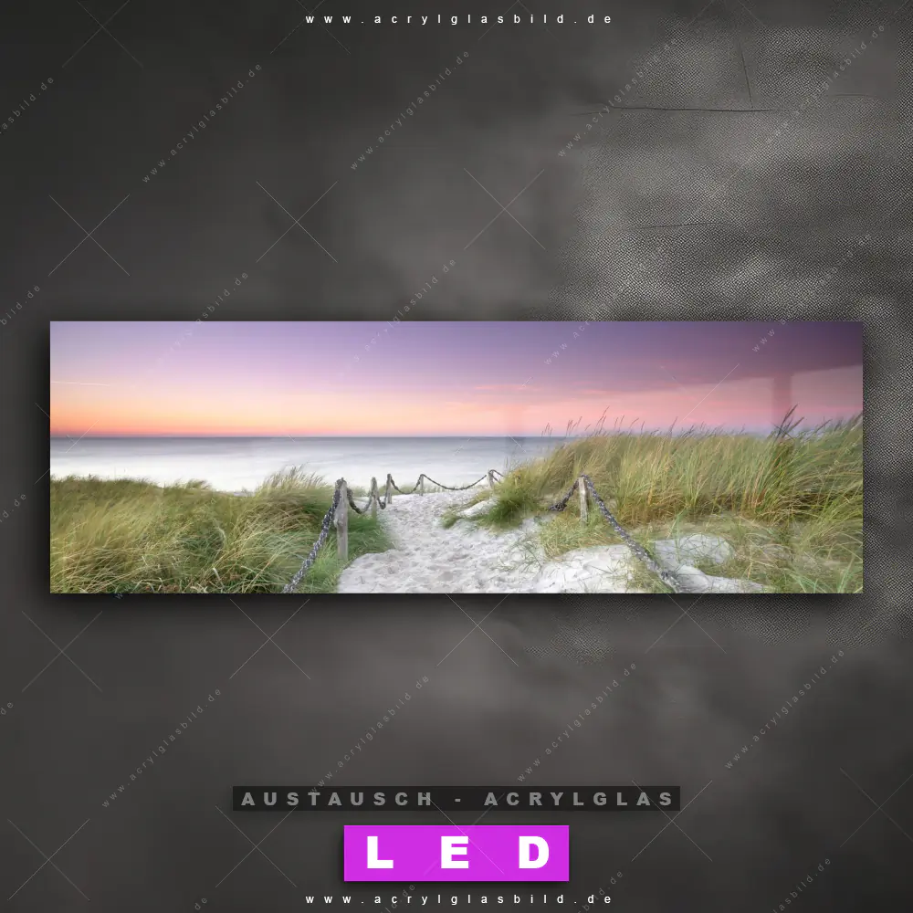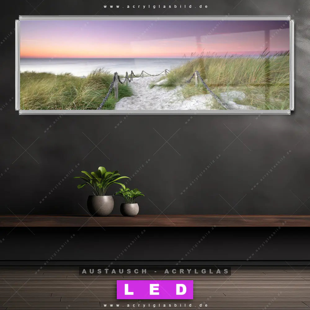 Wechsel-Acrylglas Canvalight® DIA | Strandweg im Sonnenuntergang | Panorama
