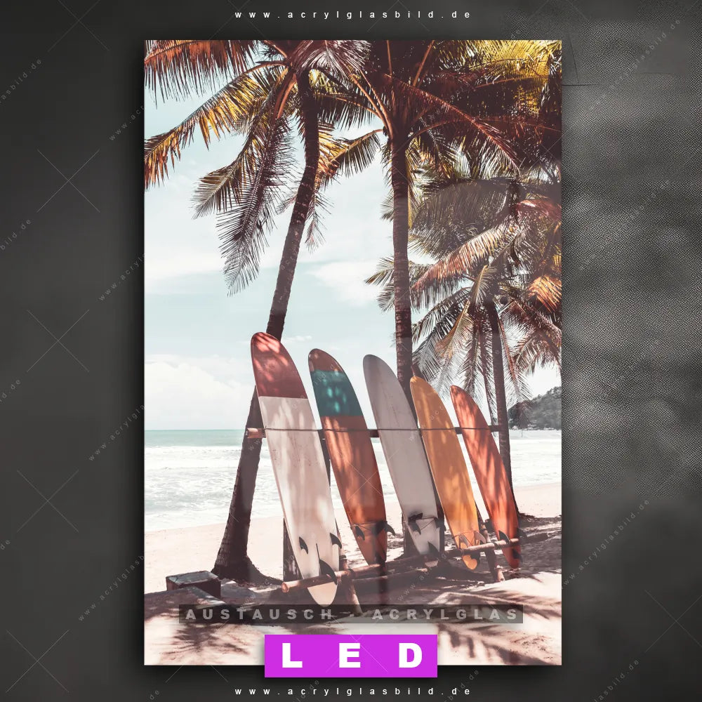 Wechsel-Acrylglas Canvalight® DIA | Surfbretter und Palmen | Hochformat