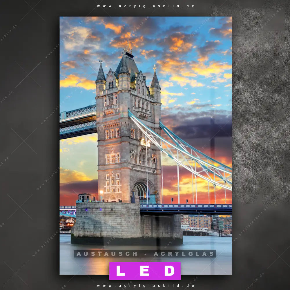 Wechsel-Acrylglas Canvalight® DIA | Tower Bridge im Abendglanz | Hochformat