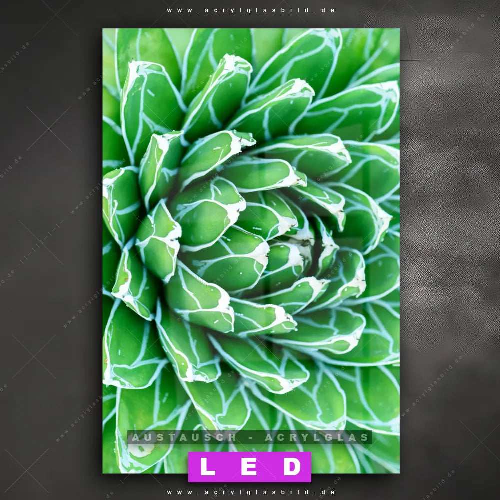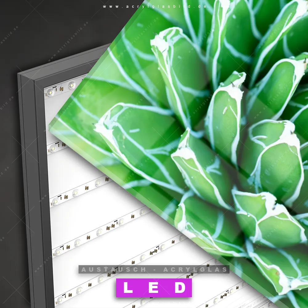 Begriffe wie Kaktus, Pflanze, Sukkulente, Close Up, Nahaufnahme, Blüte, exotisch haben dich auf der Suche nach deinem neuen Austausch-Acrylglasbild inspiriert? Dann sollte das Wechsel-Acrylglasbild Grüne Sukkulente für dein bereits vorhandenes LED Acrylglasbild Canvalight® DIA den Weg zu dir finden.