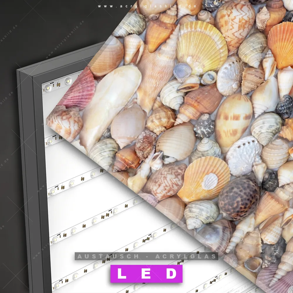Begriffe wie Strand, Sand, Ozean, Reisen, Muscheln, Seesterne, Meer, Urlaub haben dich auf der Suche nach deinem neuen Austausch-Acrylglasbild inspiriert? Dann sollte das Wechsel-Acrylglasbild Muschelvielfalt für dein bereits vorhandenes LED Acrylglasbild Canvalight® DIA den Weg zu dir finden.
