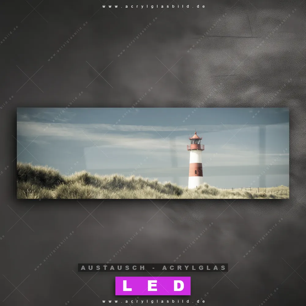 Begriffe wie Meer, Strand, Leuchtturm, Ostsee, Nordsee, Lighthouse, Gras, Deutschland, Sommer, Düne, Reise haben dich auf der Suche nach deinem neuen Austausch-Acrylglasbild inspiriert? Dann sollte das Wechsel-Acrylglasbild Leuchtturm auf Düne für dein bereits vorhandenes LED Acrylglasbild Canvalight® DIA den Weg zu dir finden.