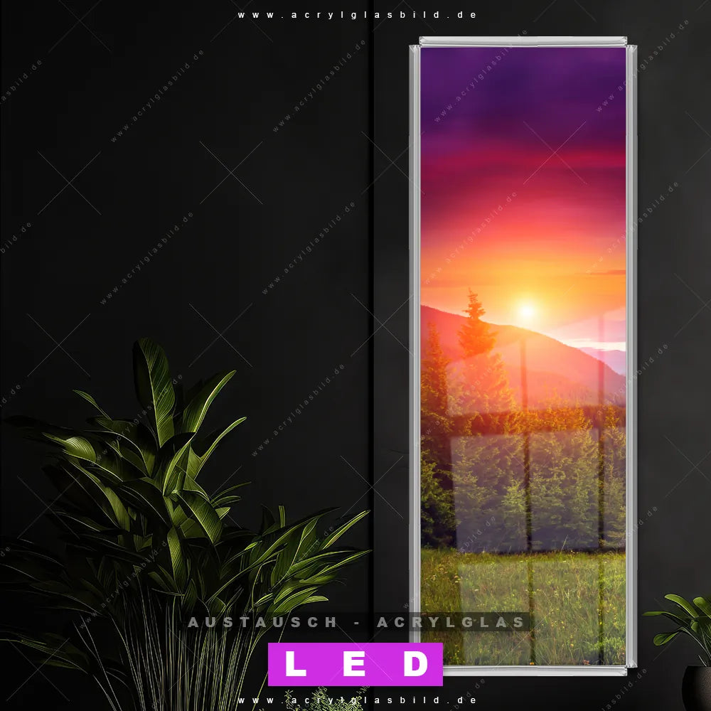 Wechsel-Acrylglas Canvalight® DIA | Wald bei Sonnenuntergang | Schmal