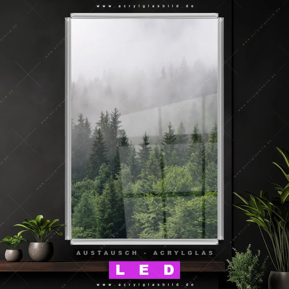 Begriffe wie Wald, Nebel, Landschaft, Baum, Bäume, Natur, Nadelwald, Baumkronen, Tannen haben dich auf der Suche nach deinem neuen Austausch-Acrylglasbild inspiriert? Dann sollte das Wechsel-Acrylglasbild Nebel über Nadelwald für dein bereits vorhandenes LED Acrylglasbild Canvalight® DIA den Weg zu dir finden.