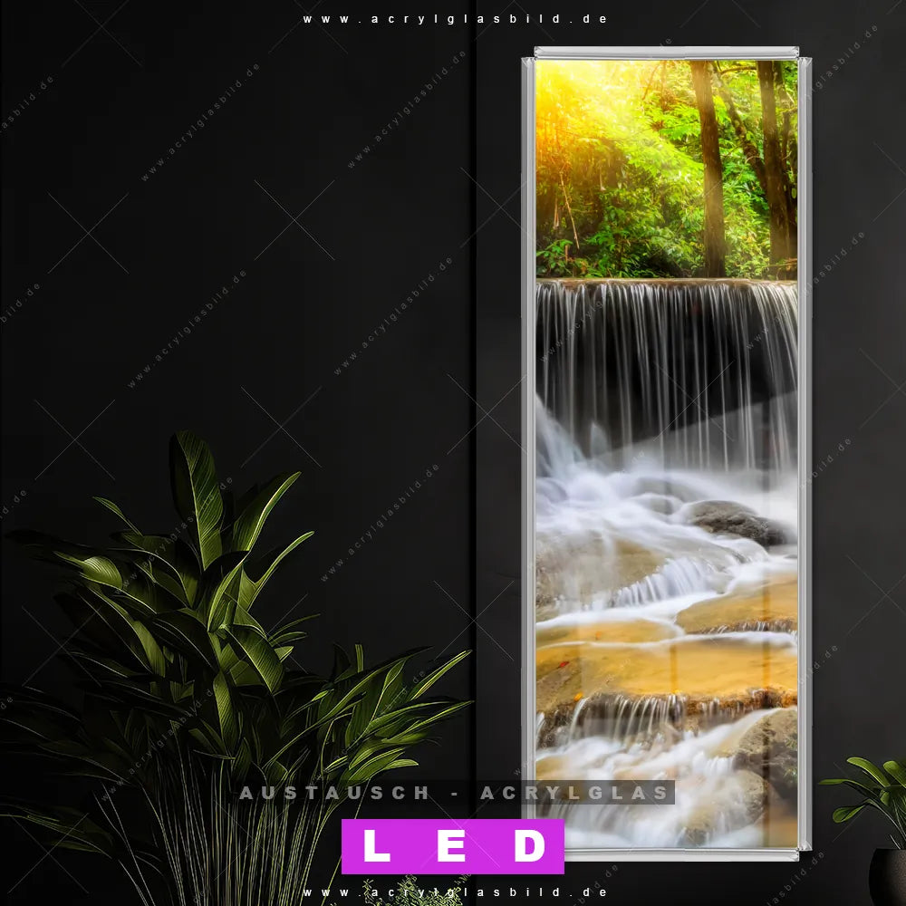 Begriffe wie Yoga, Landschaft, Natur, Sonne, Wald, Wasserfälle, Gewässer haben dich auf der Suche nach deinem neuen Austausch-Acrylglasbild inspiriert? Dann sollte das Wechsel-Acrylglasbild Wasserfälle im Urwald für dein bereits vorhandenes LED Acrylglasbild Canvalight® DIA den Weg zu dir finden.